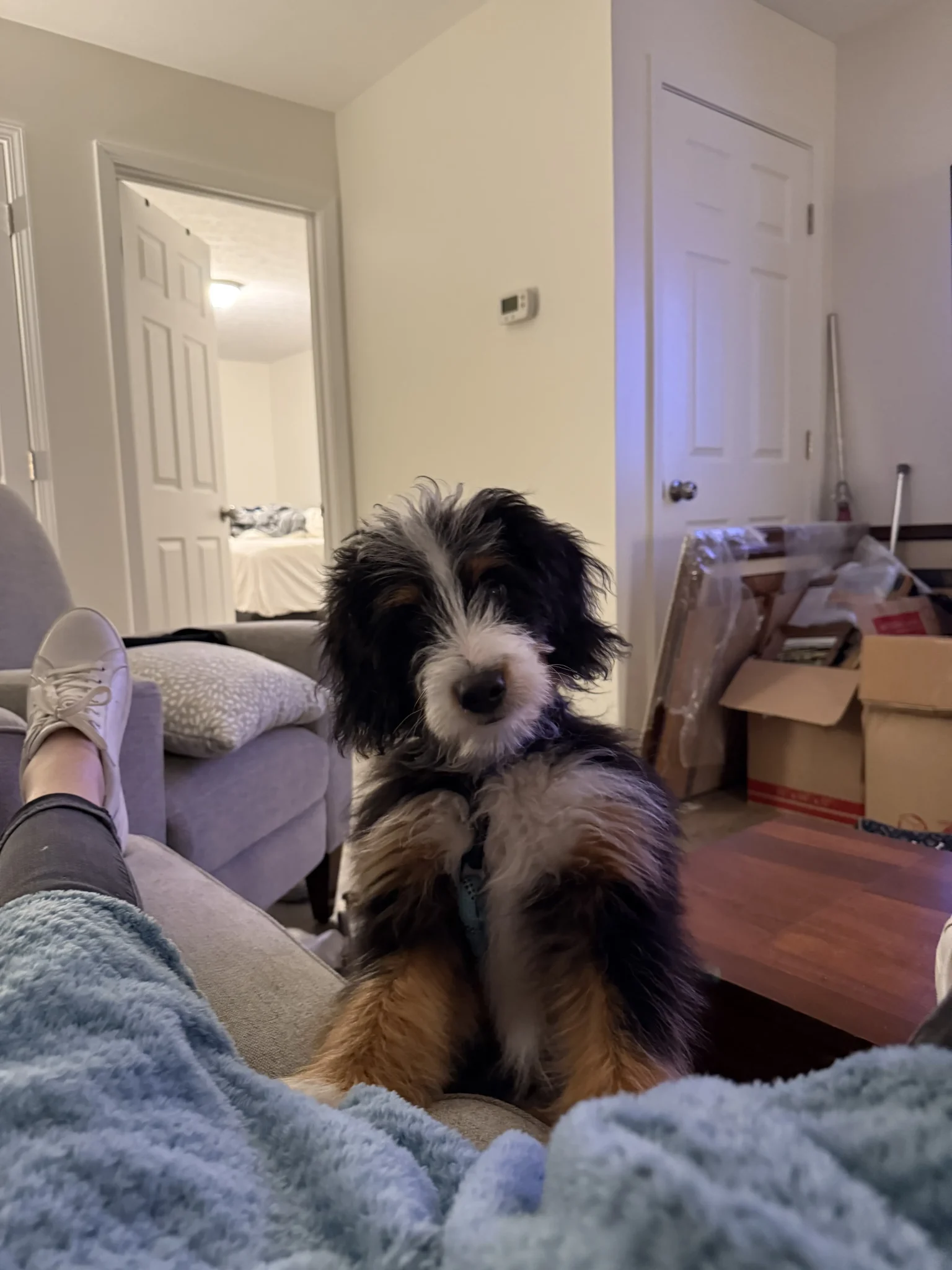 We couldn’t be happier with our Mini Bernedoodle from The Bernadoodles! Our puppy, whom we renamed Rocket, arrived healthy, happy, and absolutely stunning — his coat and coloring are even more beautiful in person. At just 4 months old, he’s already showing how intelligent and eager to learn he is. He quickly picked up basic commands and even understands appropriate teething activities — something we never expected so soon!