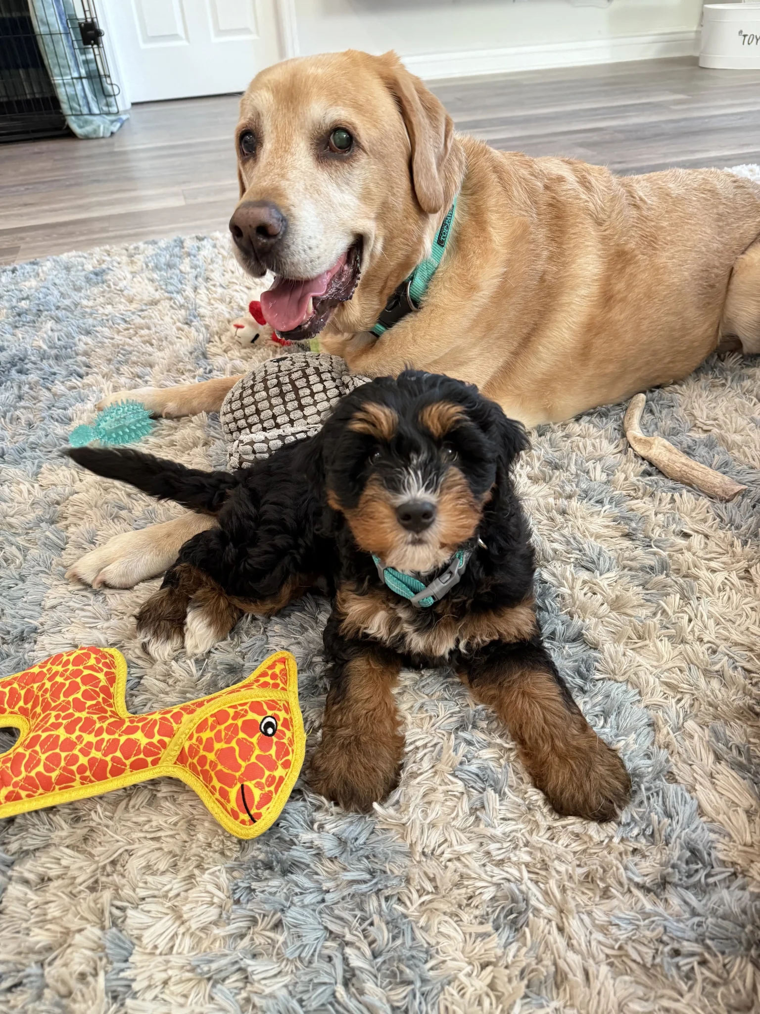 Our Bernedoodle Holly has been the perfect addition to our family—smart, playful, well-mannered