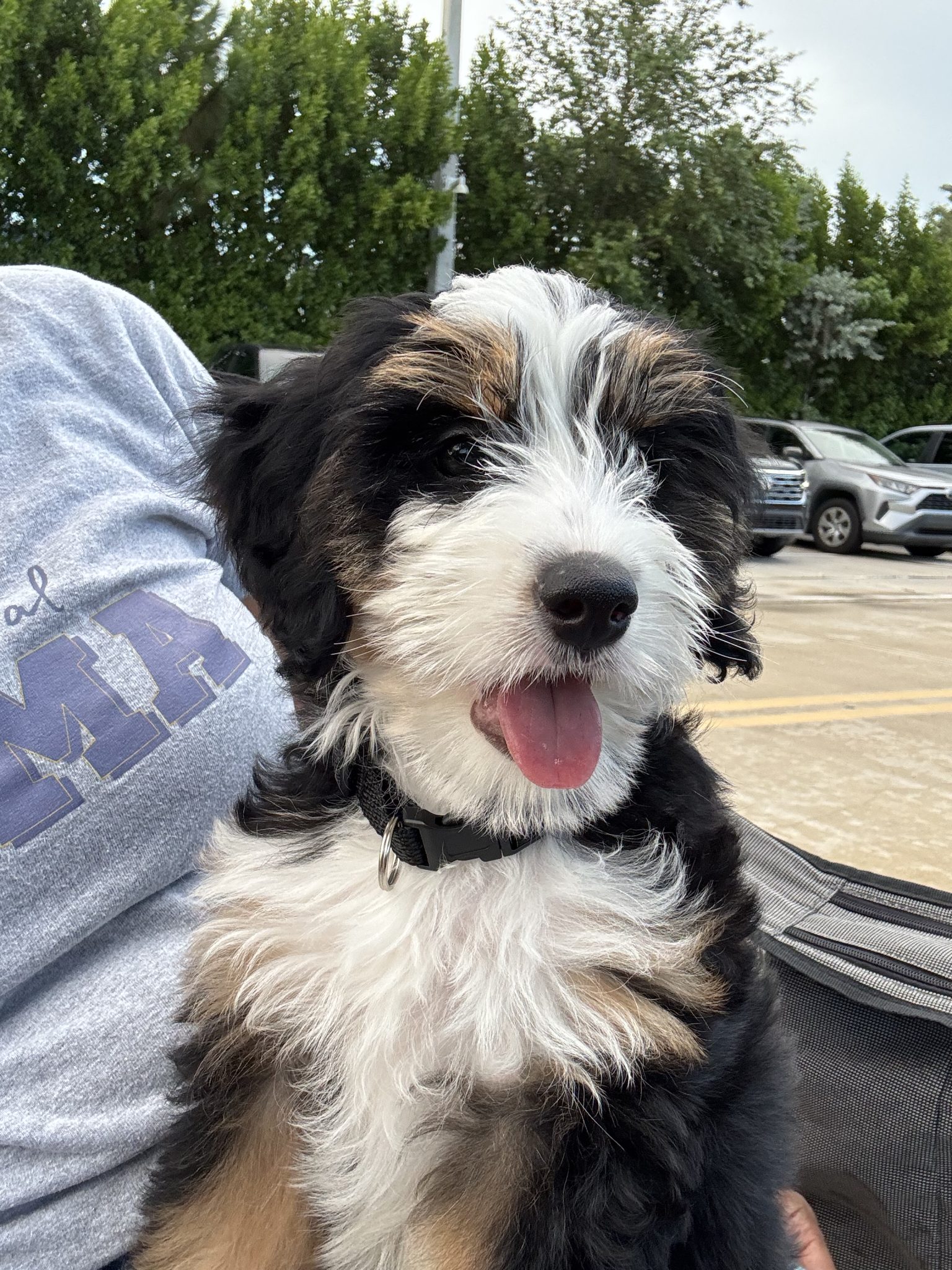 It was a lucky day for me when I stumbled upon The Bernedoodles.com website. I was on a mission to surprise my husband with a puppy. He had shown a liking for Bernedoodles. I browsed through the puppies that were available for adoption and came upon BaciLu’s photo ( formerly called Regina). When I called and spoke with Elton I knew right away this was a reputable site. Elton answered all my questions and told me what the process would involve. It all went perfectly right up to the morning Baci was delivered to my home, much to my husband’s surprise. !!!Our puppy has been a total joy from the minute we received her. Baci is the friendliest, well-behaved pup I have ever had!!! I would recommend anyone looking for a Mini-Bernedoodle to look no further than this site.