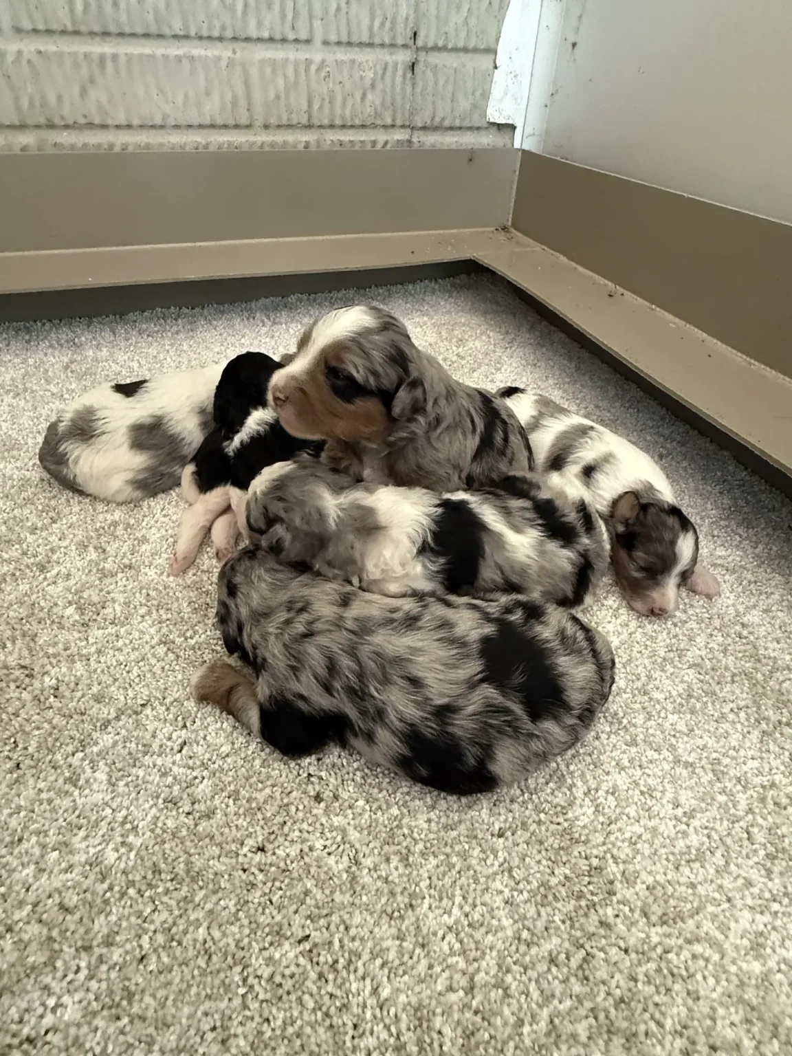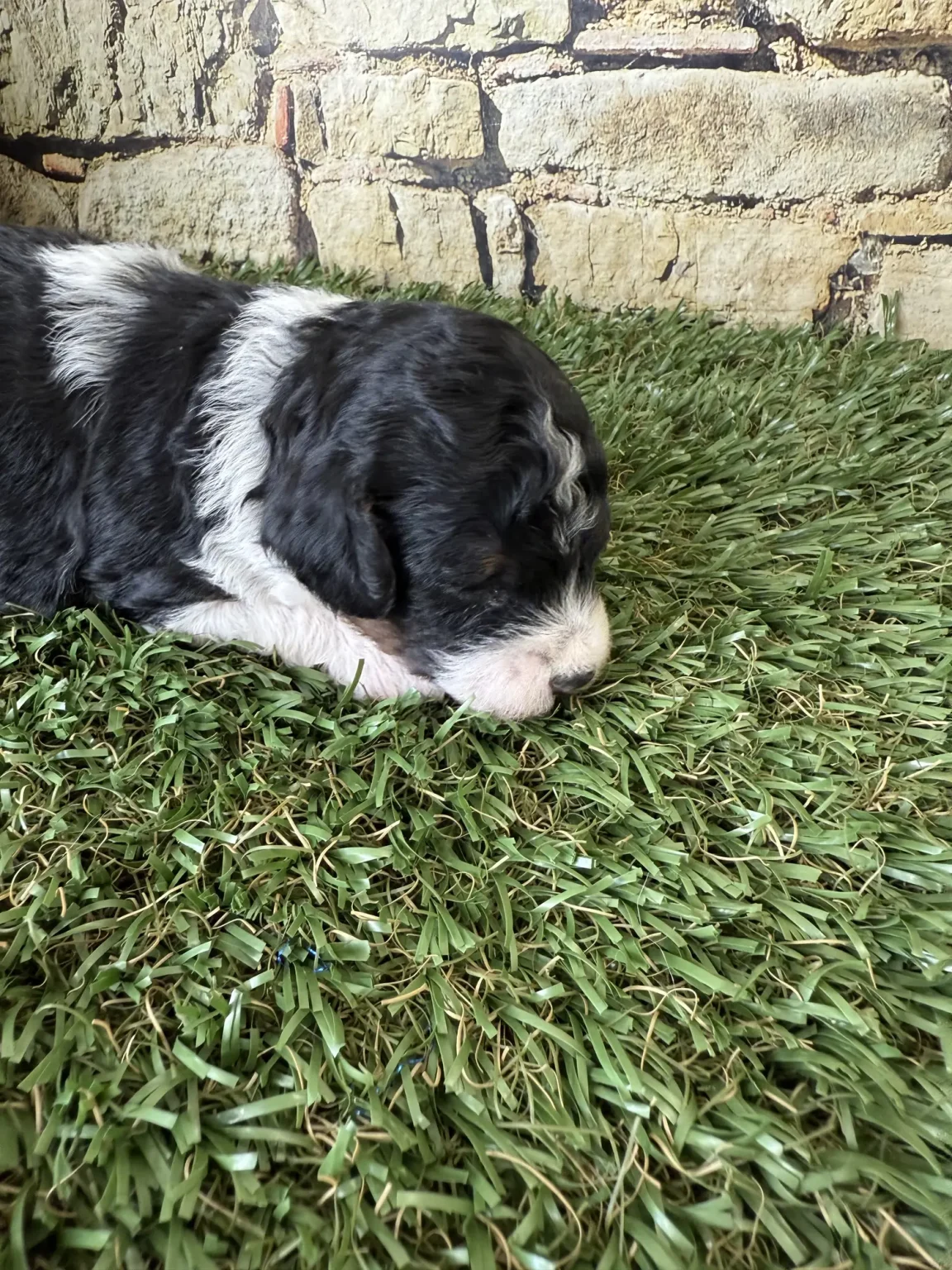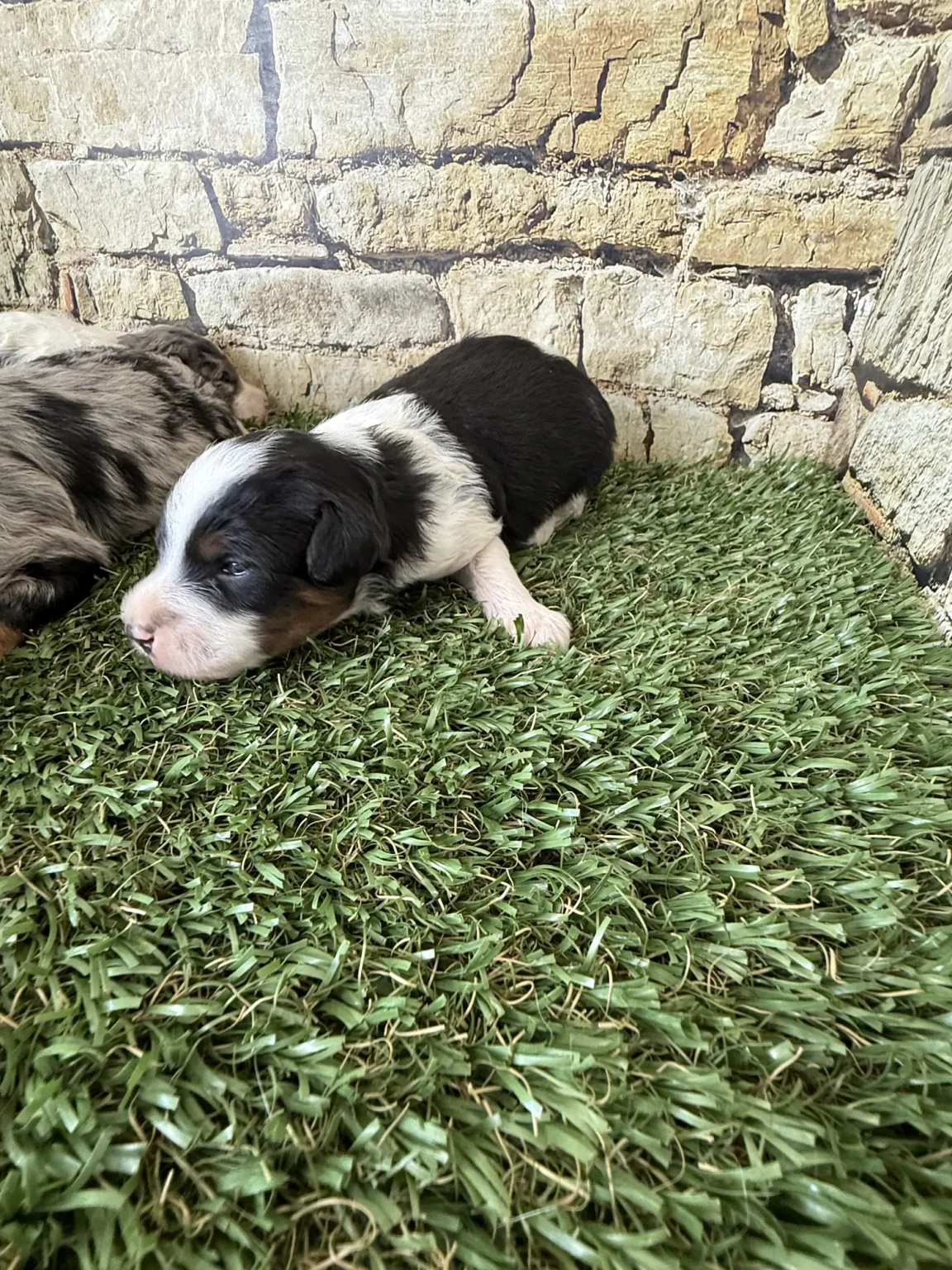 Say hello to this beautiful litter of F1B Micro Mini-Bernedoodle puppies from Brianna & Rocky! These puppies were born on June 19 and will be available to bring home on August 14. These pups are already showing off the perfect blend of loving temperament and playful charm that makes this breed so special. With their classic tricolor coats, fluffy curls, and gentle expressions, they’re sure to melt your heart!