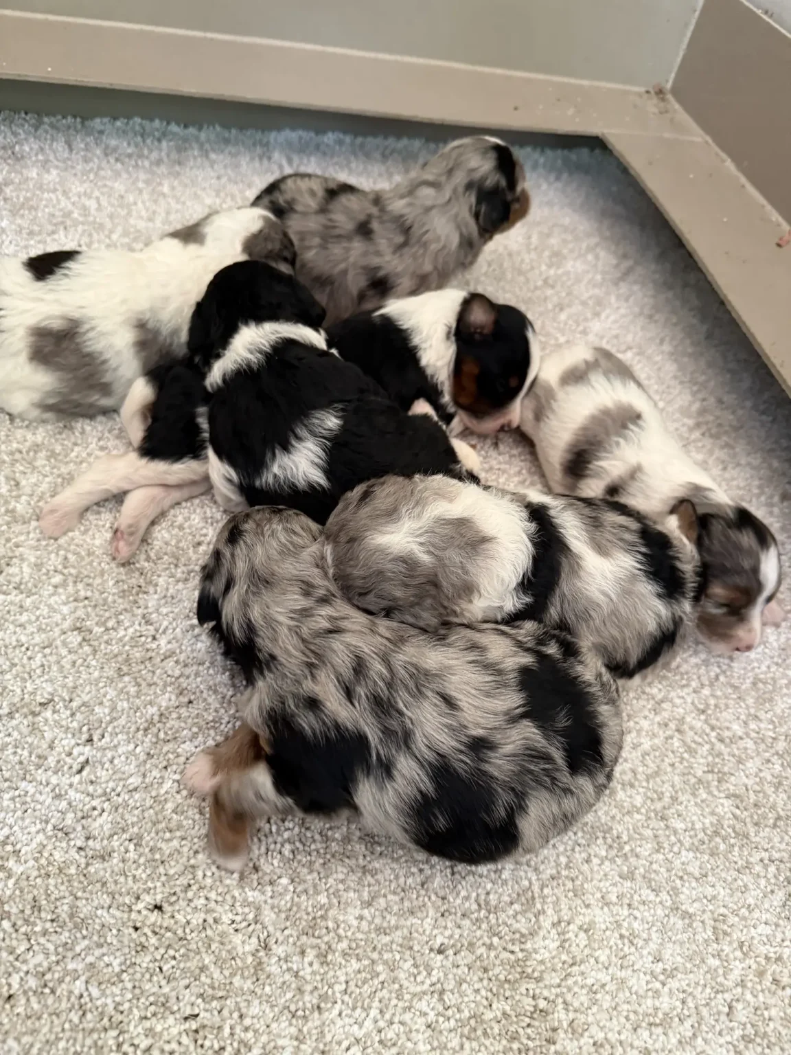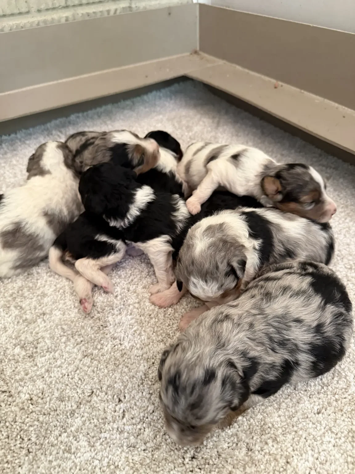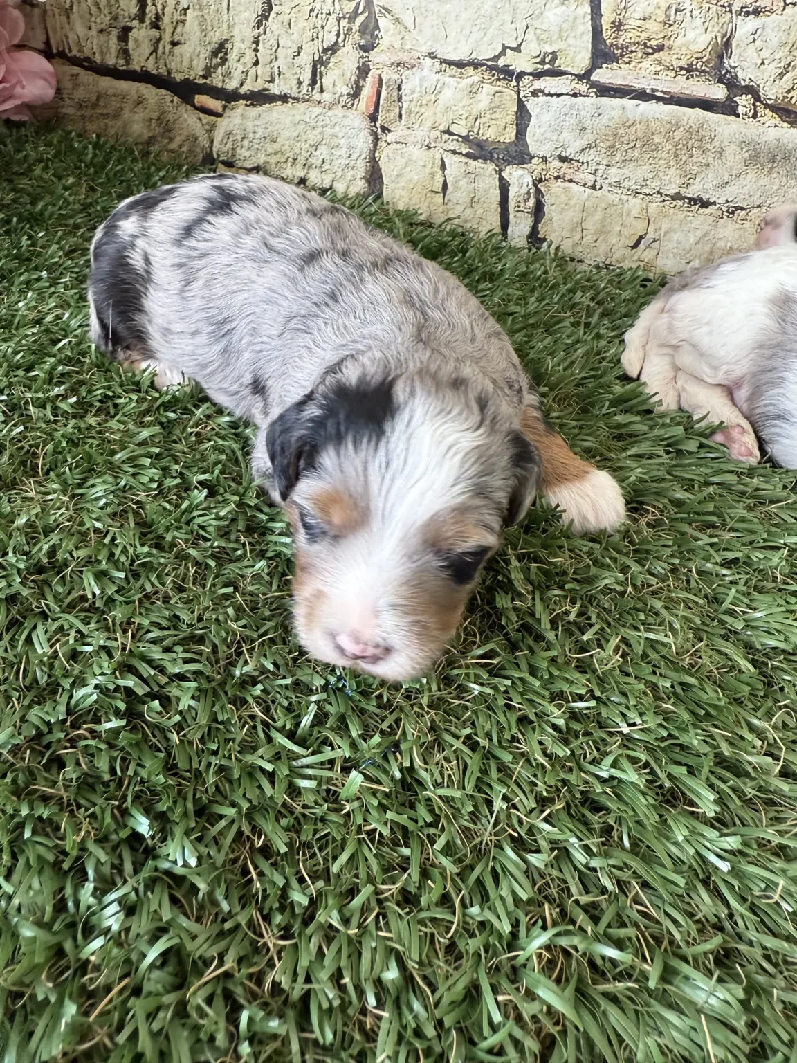 Say hello to this beautiful litter of F1B Micro Mini-Bernedoodle puppies from Brianna & Rocky! These puppies were born on June 19 and will be available to bring home on August 14. These pups are already showing off the perfect blend of loving temperament and playful charm that makes this breed so special. With their classic tricolor coats, fluffy curls, and gentle expressions, they’re sure to melt your heart!