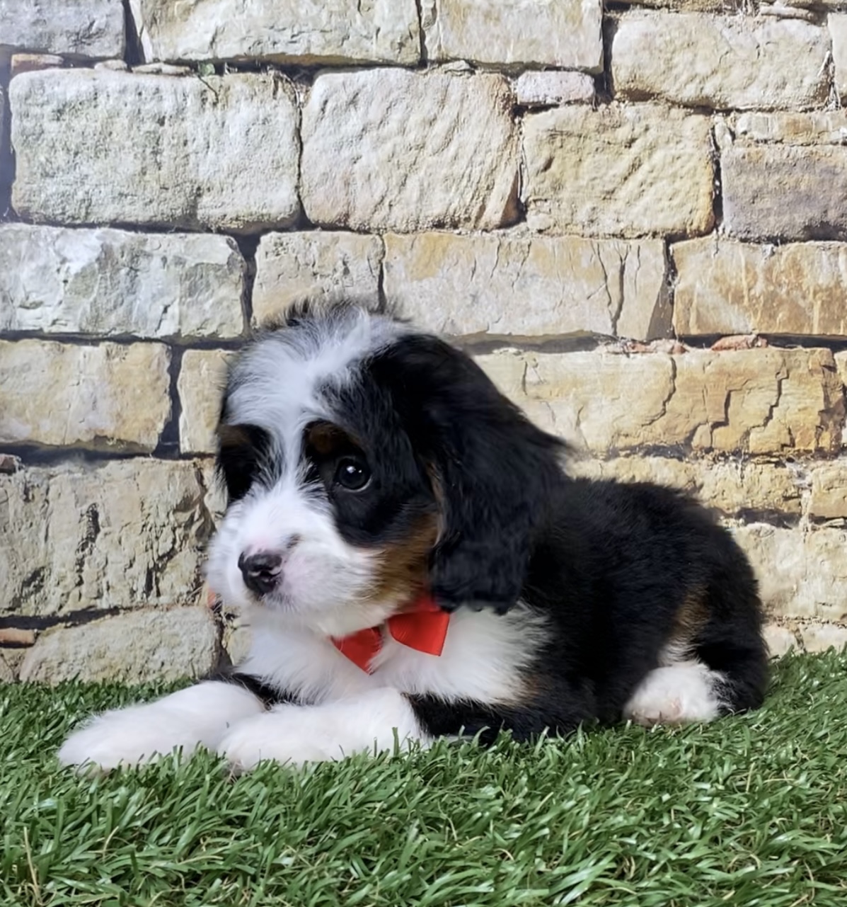 Meet this adorable Mini-Bernedoodle, a tiny bundle of joy with a delightful personality and a coat as soft as a cloud. Blending the intelligence and hypoallergenic traits of a Poodle with the friendly nature and stunning colors of a Bernese Mountain Dog, this pup is the perfect companion for any household. Mr. Asher promises endless love and happiness to those lucky enough to bring him home.