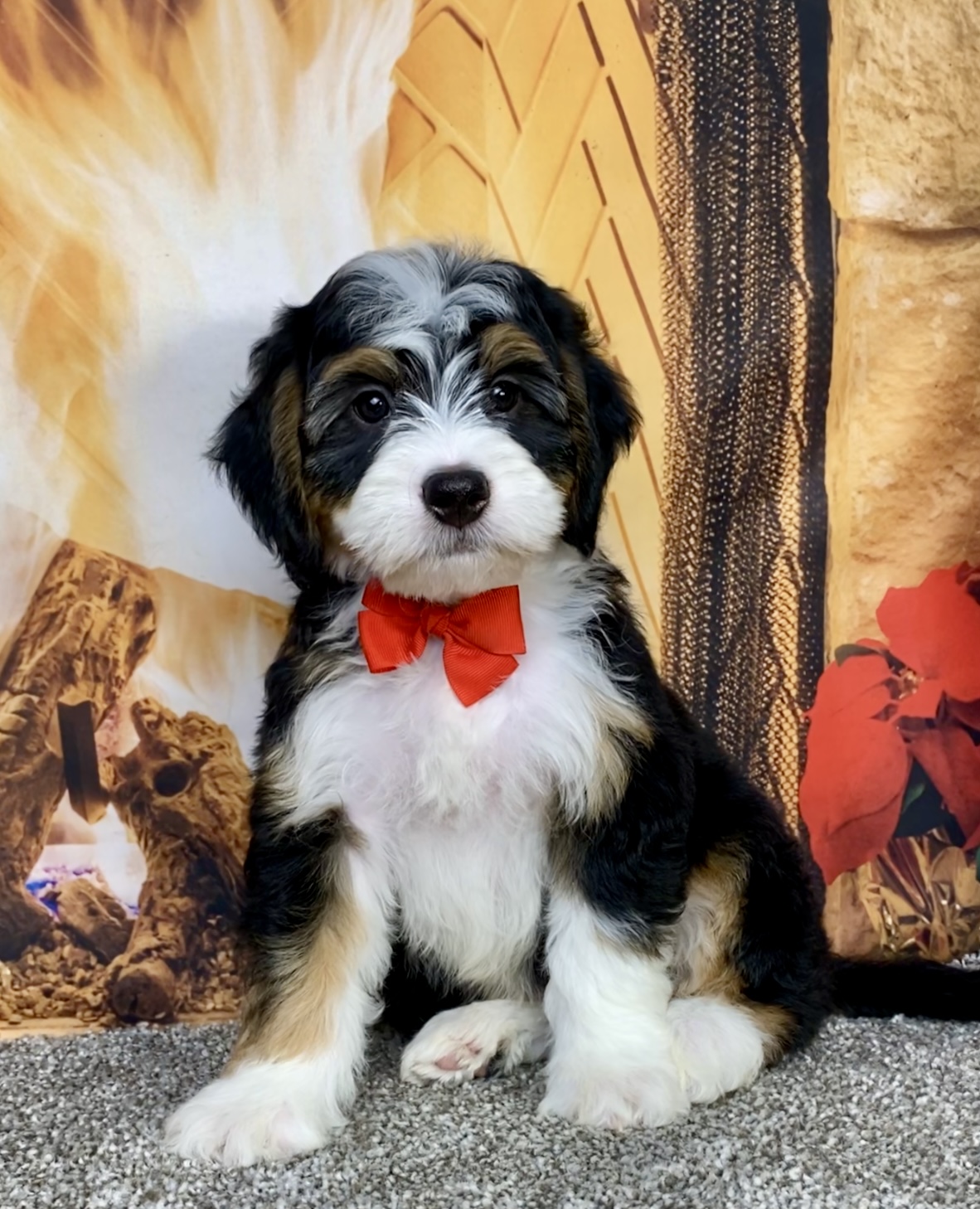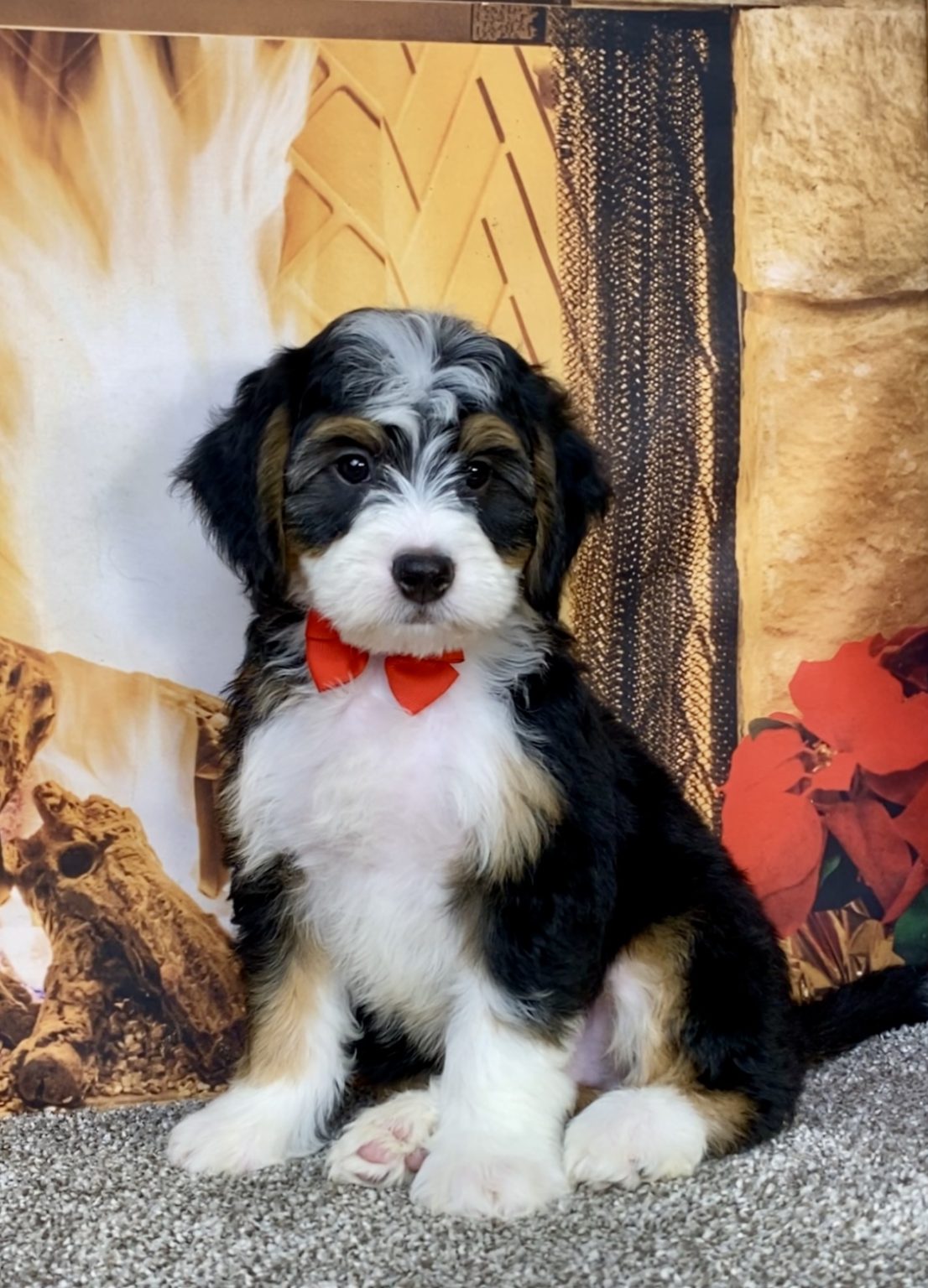 Meet this adorable Mini-Bernedoodle, a tiny bundle of joy with a delightful personality and a coat as soft as a cloud. Blending the intelligence and hypoallergenic traits of a Poodle with the friendly nature and stunning colors of a Bernese Mountain Dog, this pup is the perfect companion for any household. Mr. Austin promises endless love and happiness to those lucky enough to bring him home.