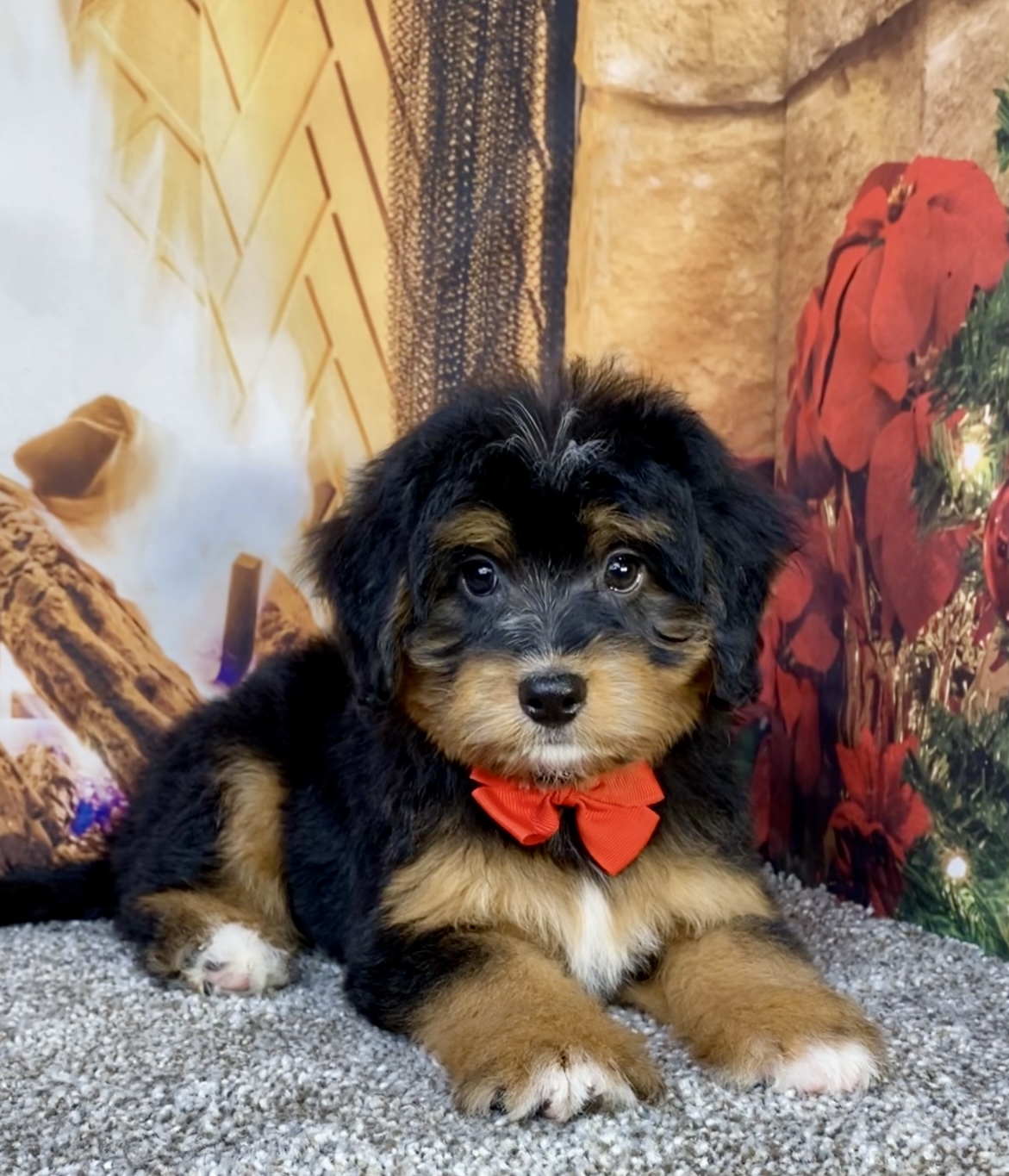 Meet this adorable Mini-Bernedoodle, a tiny bundle of joy with a delightful personality and a coat as soft as a cloud. Blending the intelligence and hypoallergenic traits of a Poodle with the friendly nature and stunning colors of a Bernese Mountain Dog, this pup is the perfect companion for any household. Mr. Bear promises endless love and happiness to those lucky enough to bring him home.