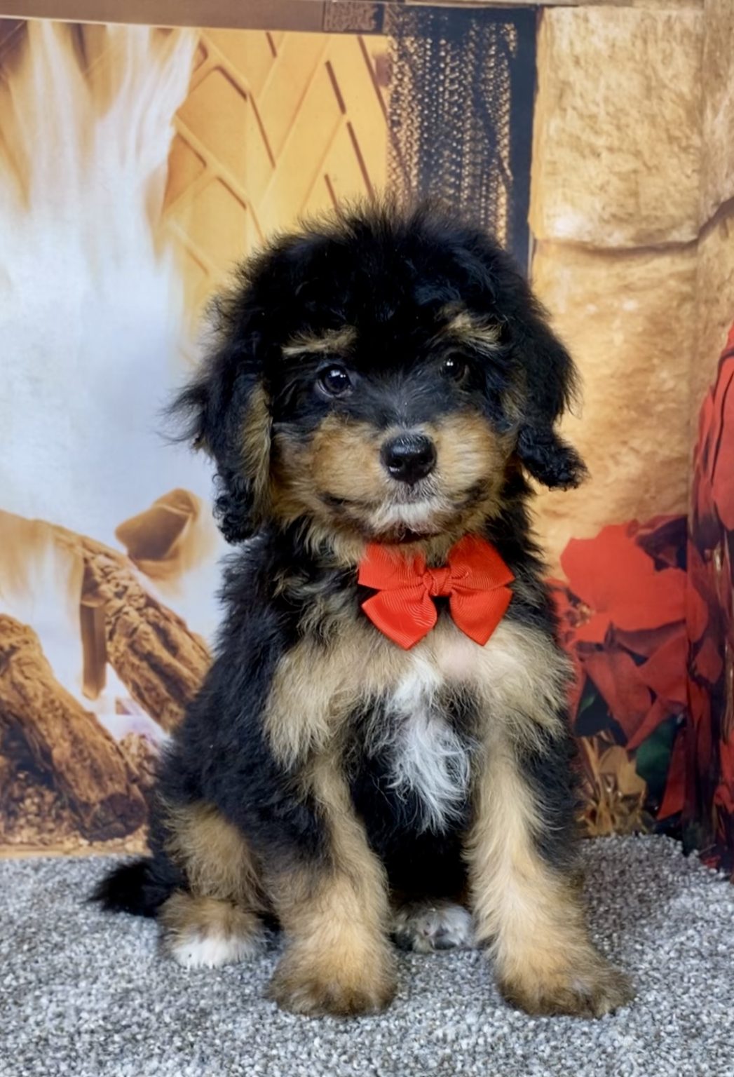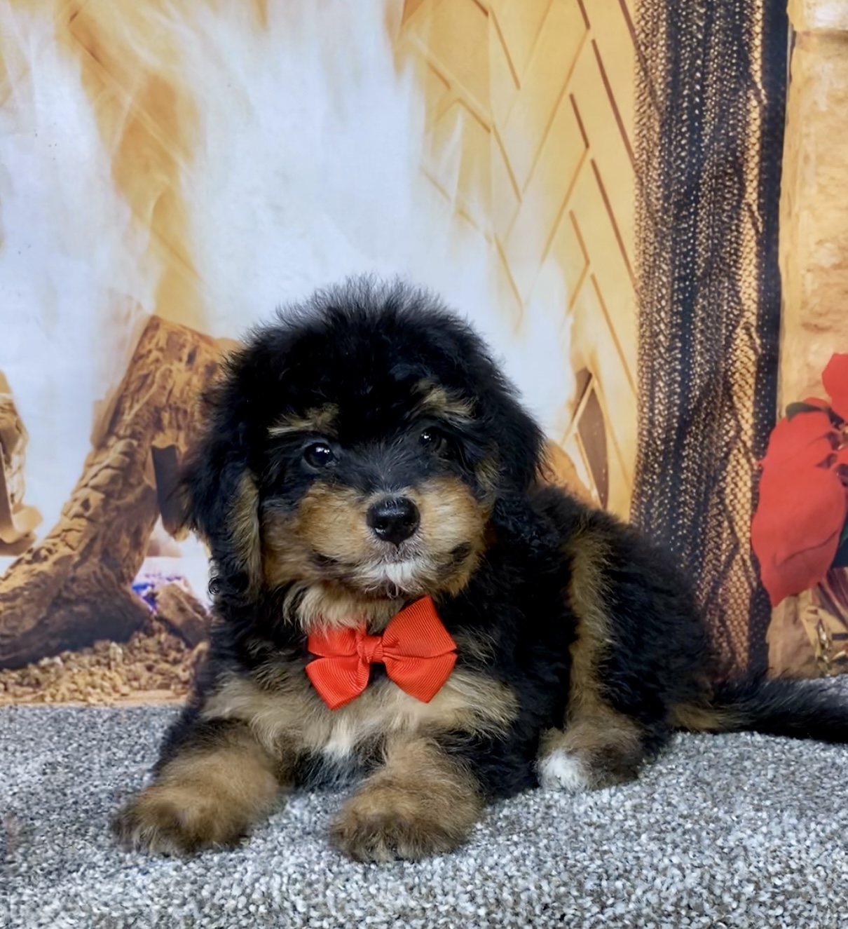 Meet this adorable Mini-Bernedoodle, a tiny bundle of joy with a delightful personality and a coat as soft as a cloud. Blending the intelligence and hypoallergenic traits of a Poodle with the friendly nature and stunning colors of a Bernese Mountain Dog, this pup is the perfect companion for any household. Mr. Blake promises endless love and happiness to those lucky enough to bring him home.