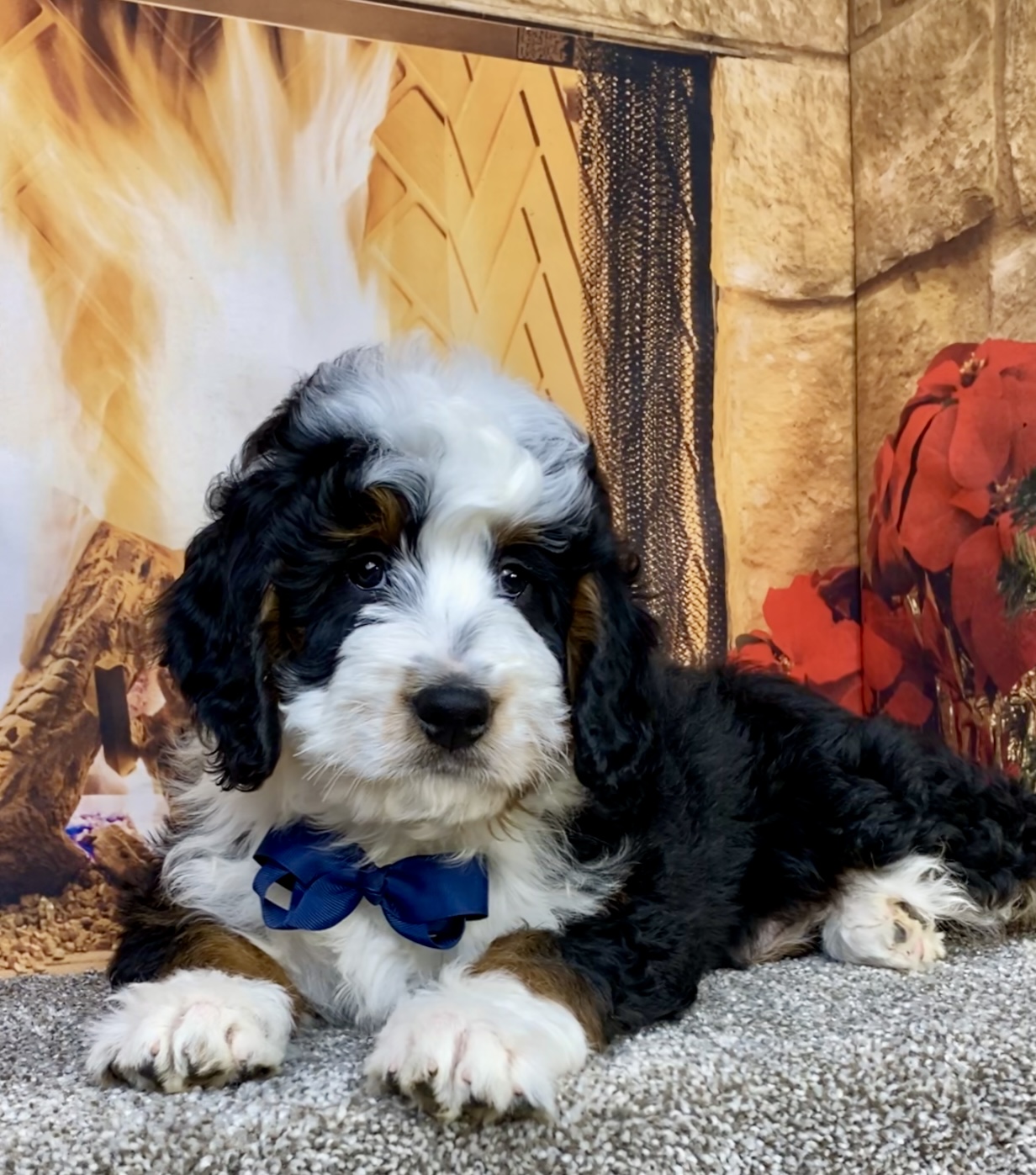 Meet this adorable Mini-Bernedoodle, a tiny bundle of joy with a delightful personality and a coat as soft as a cloud. Blending the intelligence and hypoallergenic traits of a Poodle with the friendly nature and stunning colors of a Bernese Mountain Dog, this pup is the perfect companion for any household. Mr. Clyde promises endless love and happiness to those lucky enough to bring him home.
