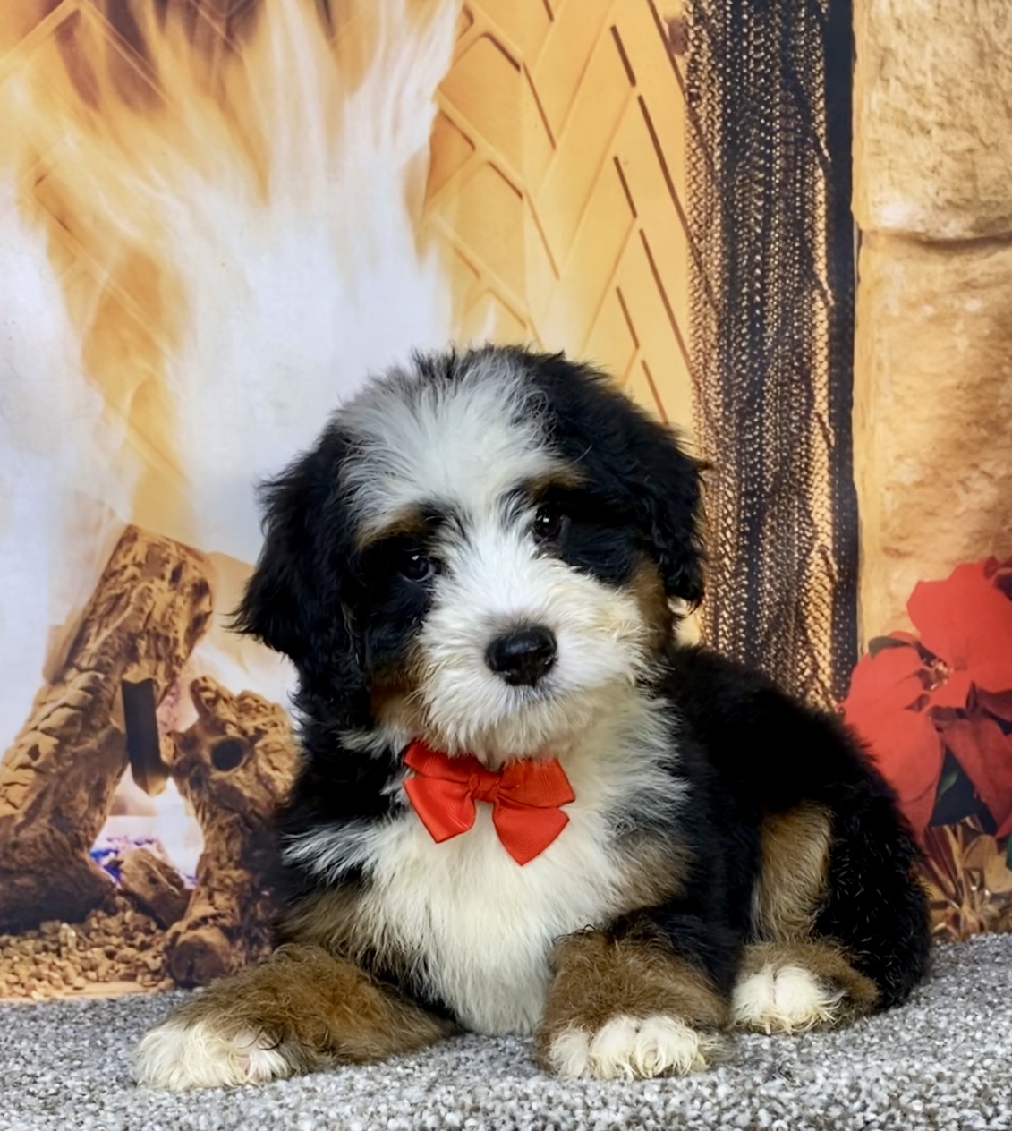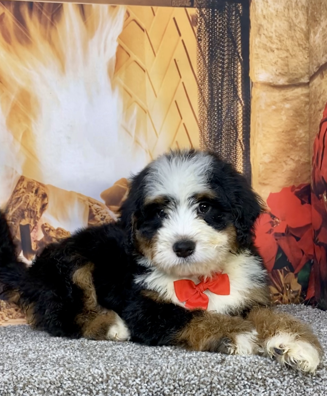Meet this adorable Mini-Bernedoodle, a tiny bundle of joy with a delightful personality and a coat as soft as a cloud. Blending the intelligence and hypoallergenic traits of a Poodle with the friendly nature and stunning colors of a Bernese Mountain Dog, this pup is the perfect companion for any household. Mr. Cole promises endless love and happiness to those lucky enough to bring him home.