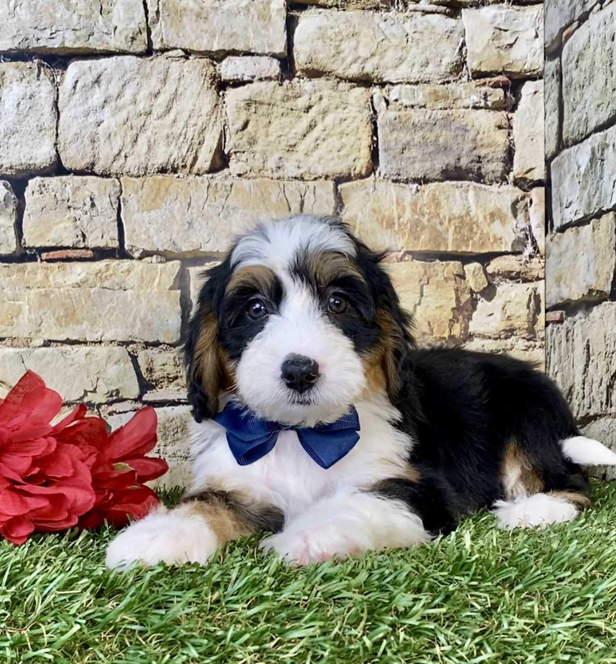 Meet this adorable Mini-Bernedoodle, a tiny bundle of joy with a delightful personality and a coat as soft as a cloud. Blending the intelligence and hypoallergenic traits of a Poodle with the friendly nature and stunning colors of a Bernese Mountain Dog, this pup is the perfect companion for any household. Mr. Dexter promises endless love and happiness to those lucky enough to bring him home.