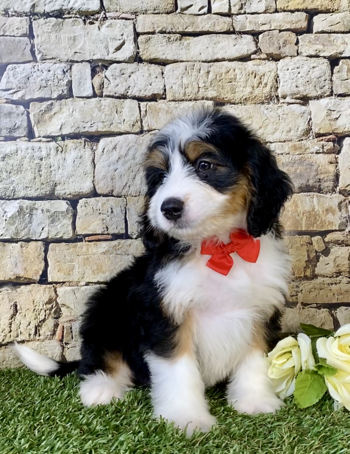 Meet this adorable Mini-Bernedoodle, a tiny bundle of joy with a delightful personality and a coat as soft as a cloud. Blending the intelligence and hypoallergenic traits of a Poodle with the friendly nature and stunning colors of a Bernese Mountain Dog, this pup is the perfect companion for any household. Mr. Diamond promises endless love and happiness to those lucky enough to bring him home.