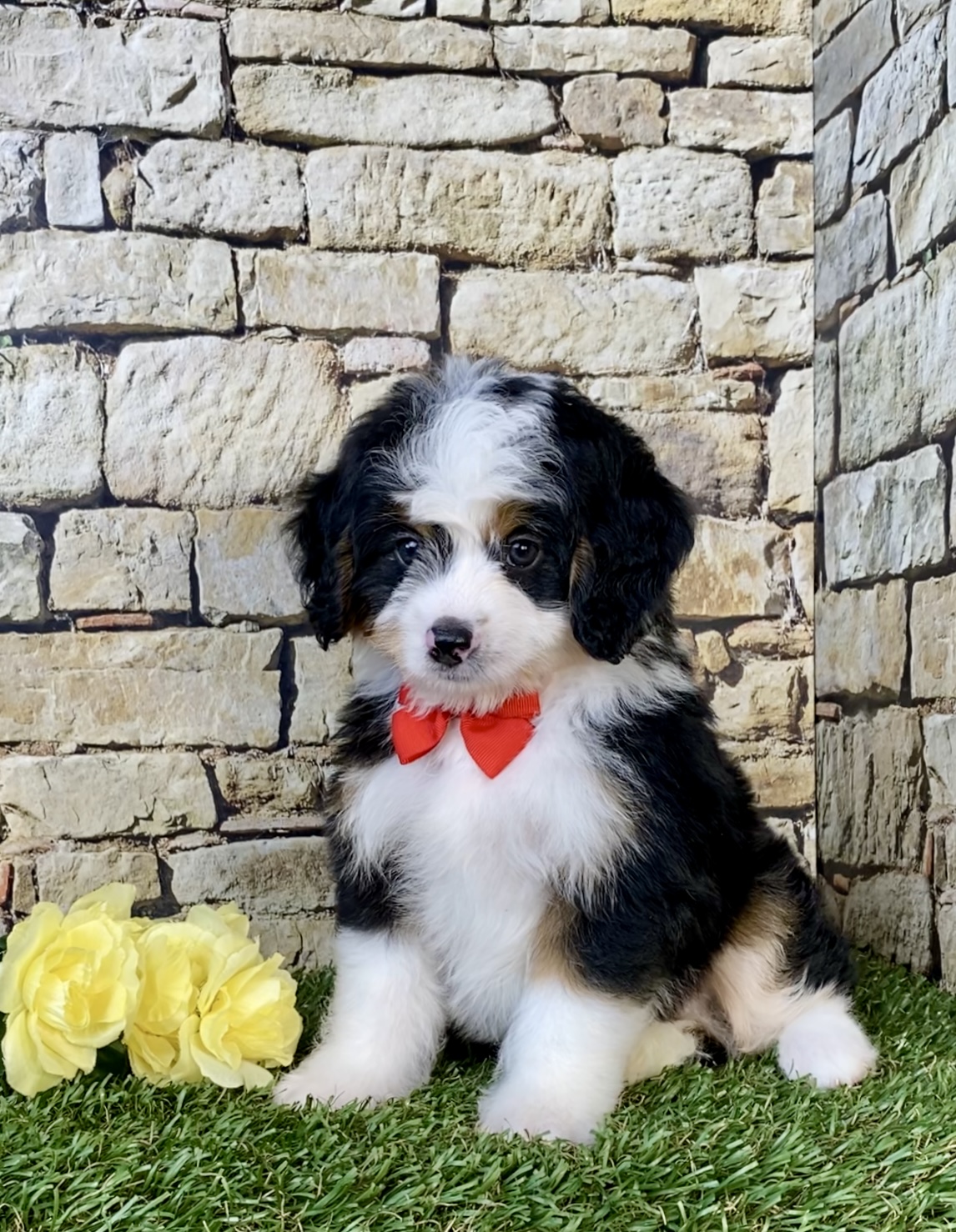 Meet this adorable Mini-Bernedoodle, a tiny bundle of joy with a delightful personality and a coat as soft as a cloud. Blending the intelligence and hypoallergenic traits of a Poodle with the friendly nature and stunning colors of a Bernese Mountain Dog, this pup is the perfect companion for any household. Mr. Duane promises endless love and happiness to those lucky enough to bring him home.