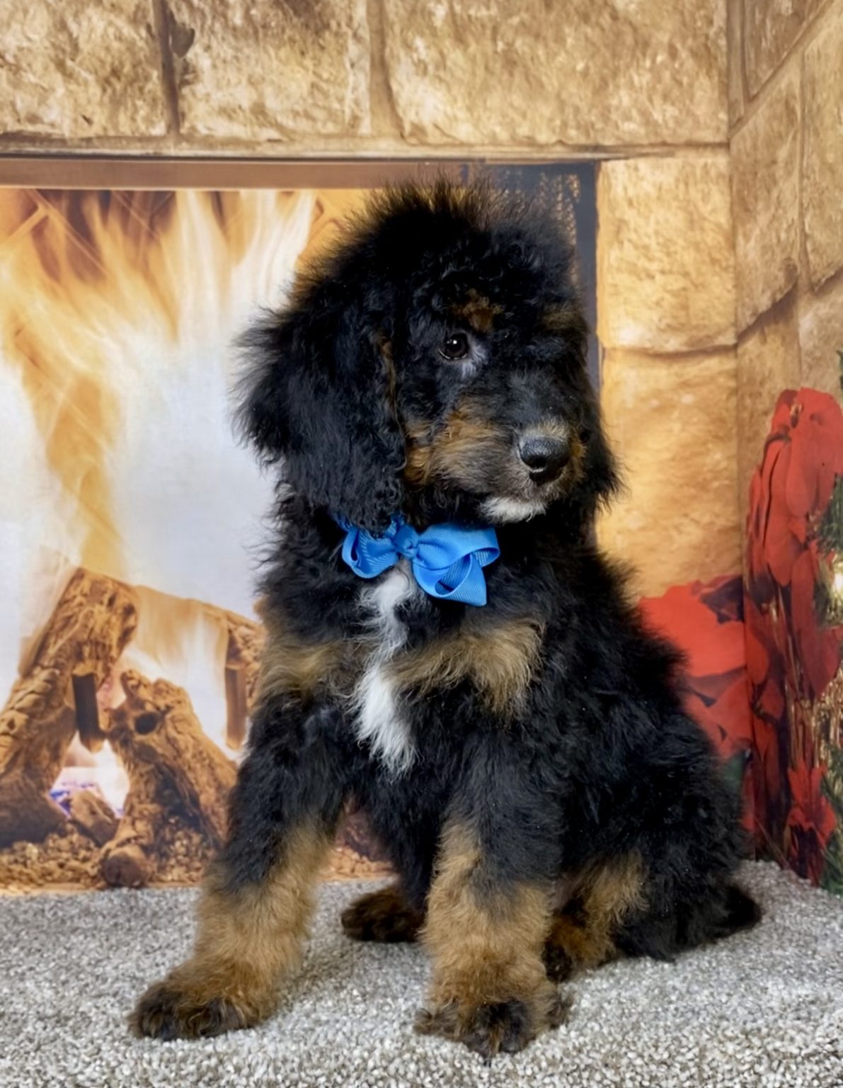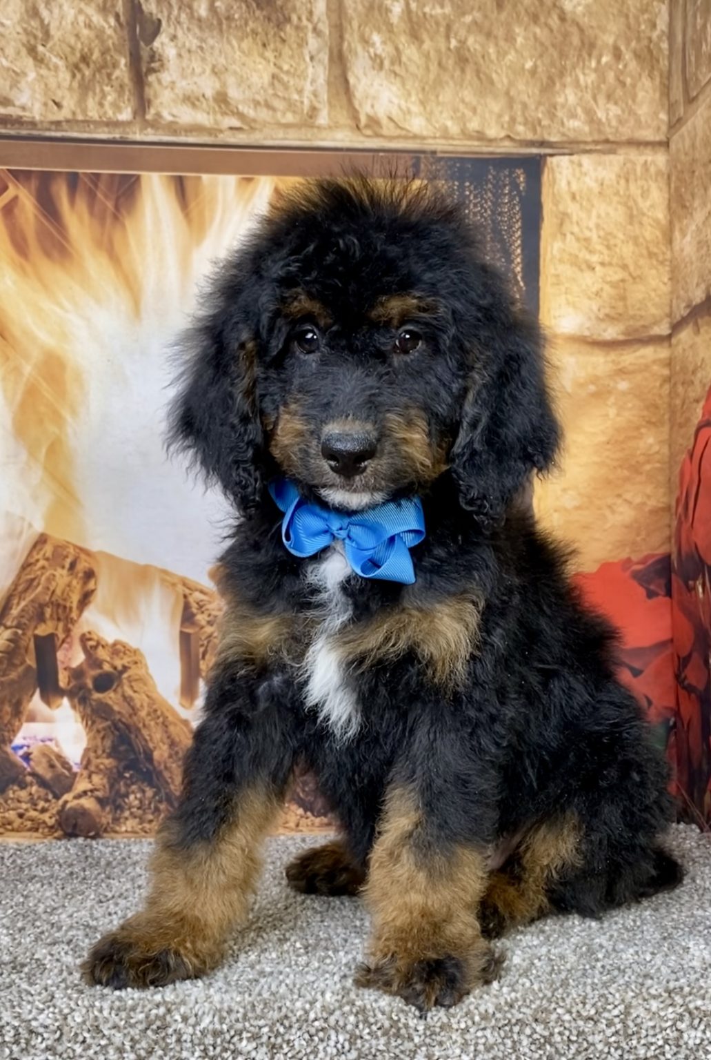 Meet this adorable Mini-Bernedoodle, a tiny bundle of joy with a delightful personality and a coat as soft as a cloud. Blending the intelligence and hypoallergenic traits of a Poodle with the friendly nature and stunning colors of a Bernese Mountain Dog, this pup is the perfect companion for any household. Mr. Duke promises endless love and happiness to those lucky enough to bring him home. Both of Duke’s parents are Mini-Bernedoodles, which makes her an F2 multi-generation Mini-Bernedoodle. This usually results in more consistent weight, hair coat, and temperament.