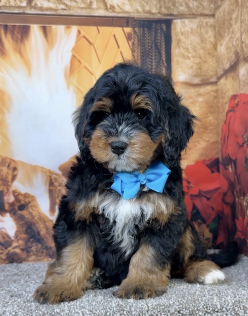Meet this adorable Mini-Bernedoodle, a tiny bundle of joy with a delightful personality and a coat as soft as a cloud. Blending the intelligence and hypoallergenic traits of a Poodle with the friendly nature and stunning colors of a Bernese Mountain Dog, this pup is the perfect companion for any household. Mr. Elvis promises endless love and happiness to those lucky enough to bring him home.