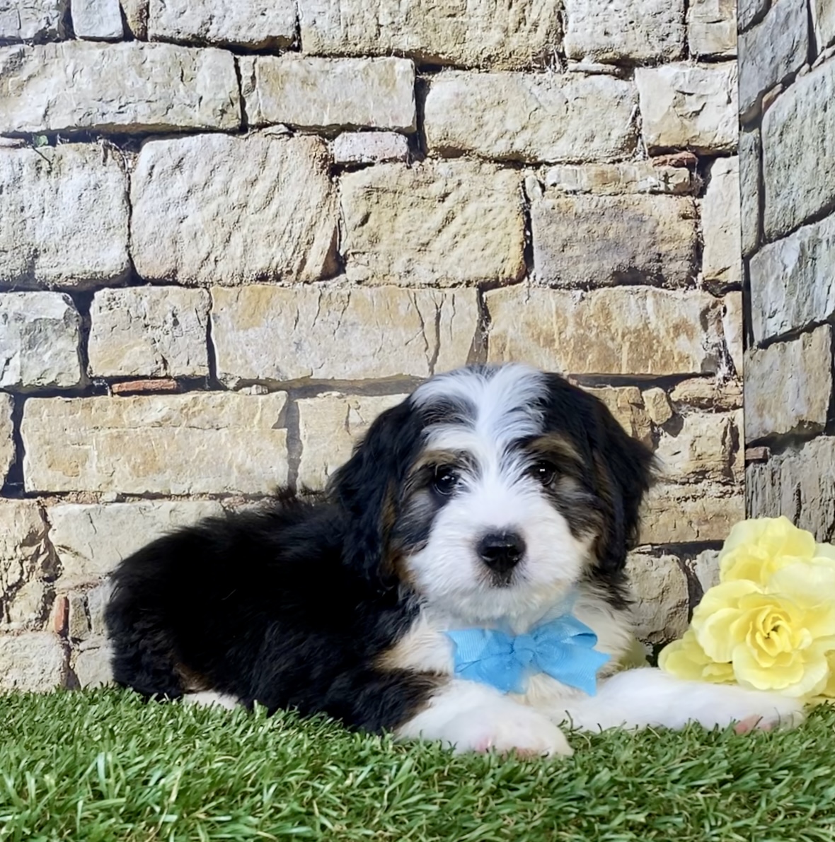 Meet this adorable Mini-Bernedoodle, a tiny bundle of joy with a delightful personality and a coat as soft as a cloud. Blending the intelligence and hypoallergenic traits of a Poodle with the friendly nature and stunning colors of a Bernese Mountain Dog, this pup is the perfect companion for any household. Mr. Elon promises endless love and happiness to those lucky enough to bring him home.