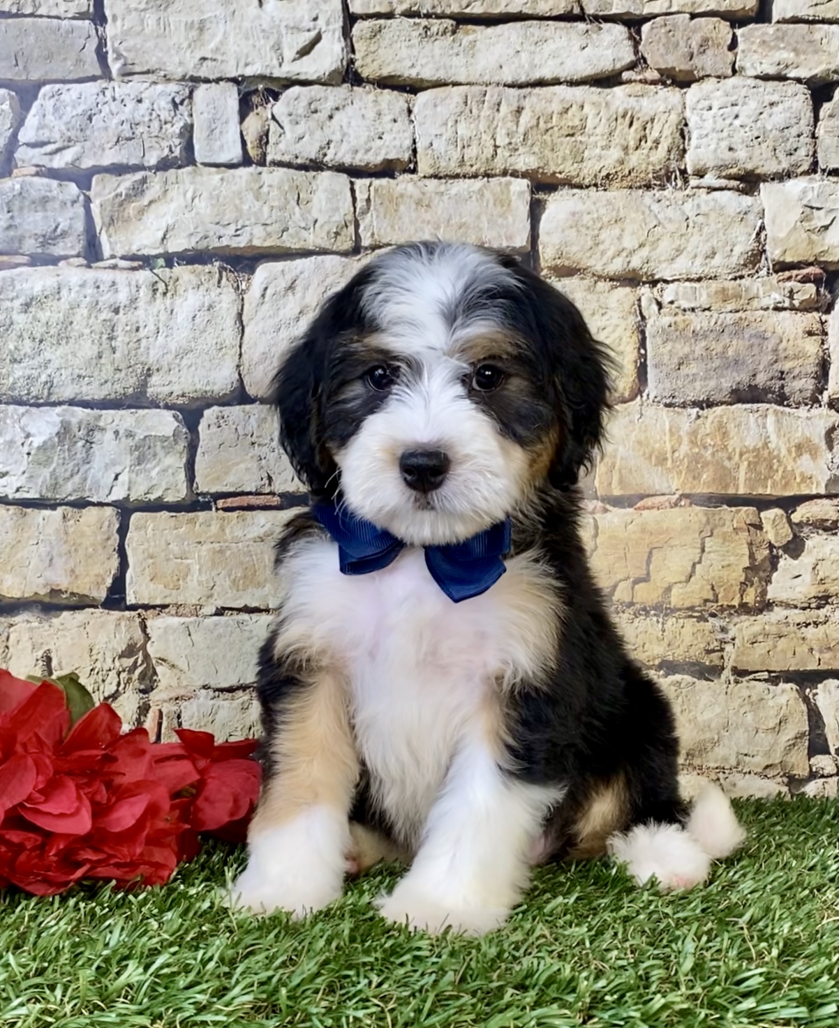 Meet this adorable Mini-Bernedoodle, a tiny bundle of joy with a delightful personality and a coat as soft as a cloud. Blending the intelligence and hypoallergenic traits of a Poodle with the friendly nature and stunning colors of a Bernese Mountain Dog, this pup is the perfect companion for any household. Mr. Enzo promises endless love and happiness to those lucky enough to bring him home.