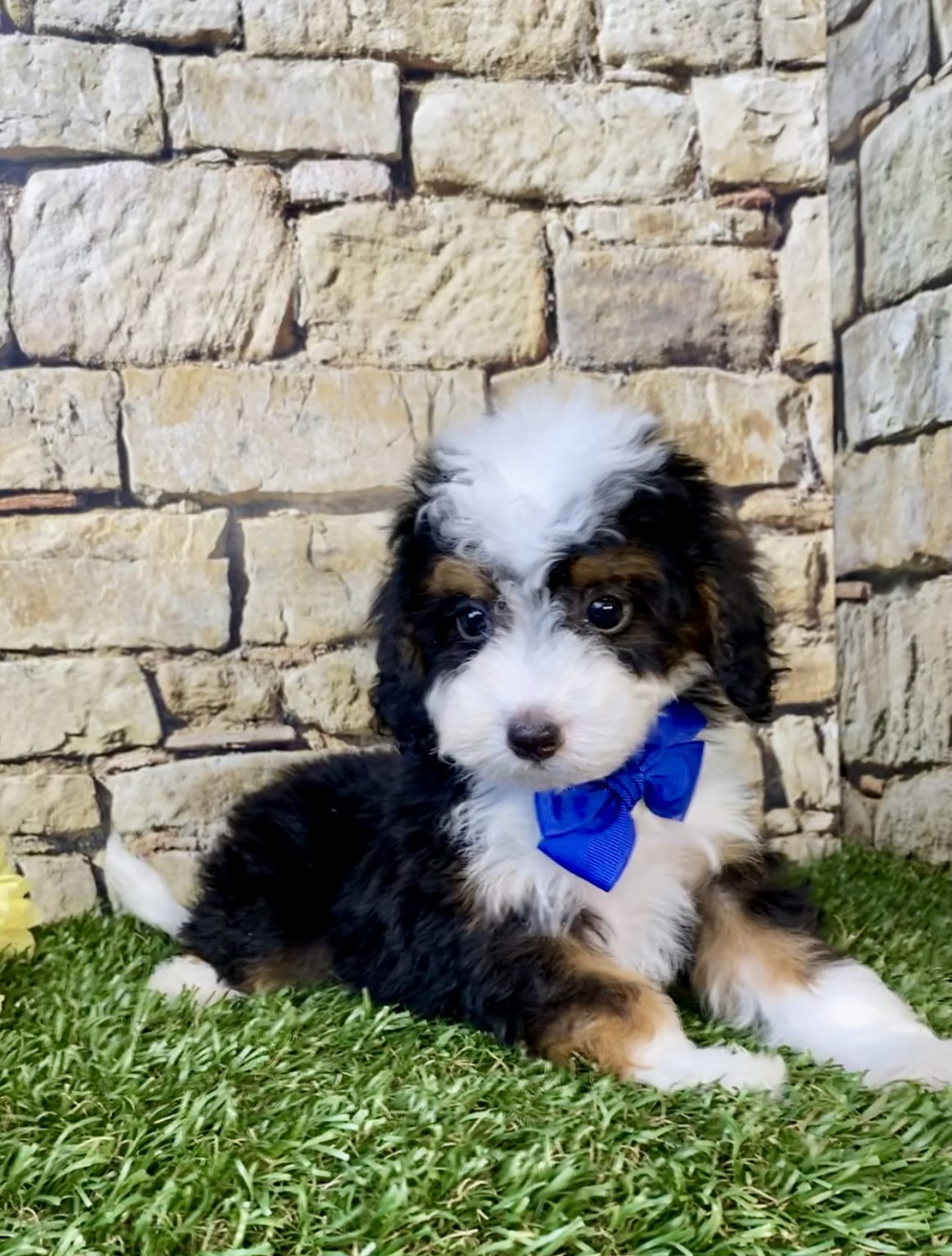 Meet this adorable Mini-Bernedoodle, a tiny bundle of joy with a delightful personality and a coat as soft as a cloud. Blending the intelligence and hypoallergenic traits of a Poodle with the friendly nature and stunning colors of a Bernese Mountain Dog, this pup is the perfect companion for any household. Mr. Fame promises endless love and happiness to those lucky enough to bring him home.