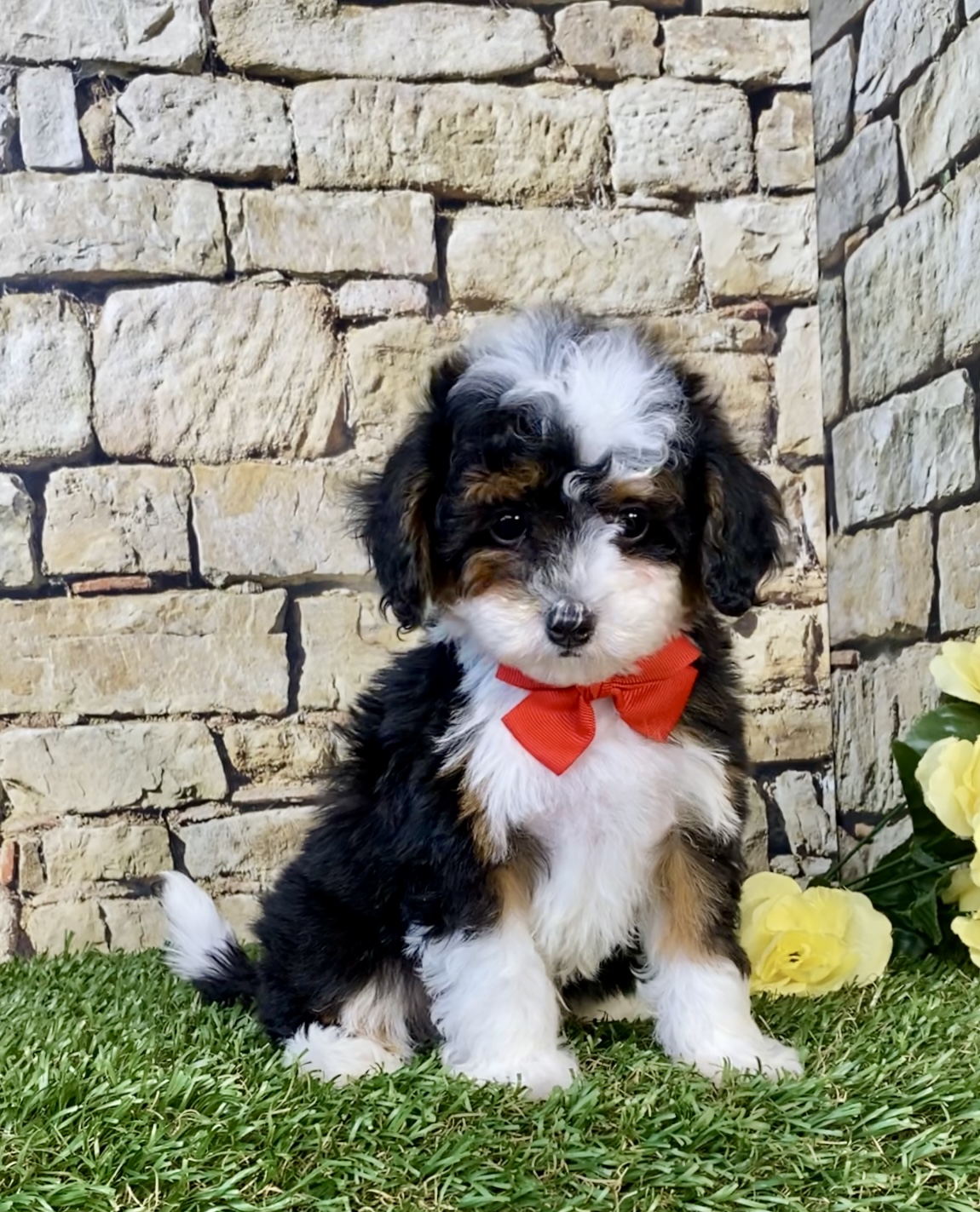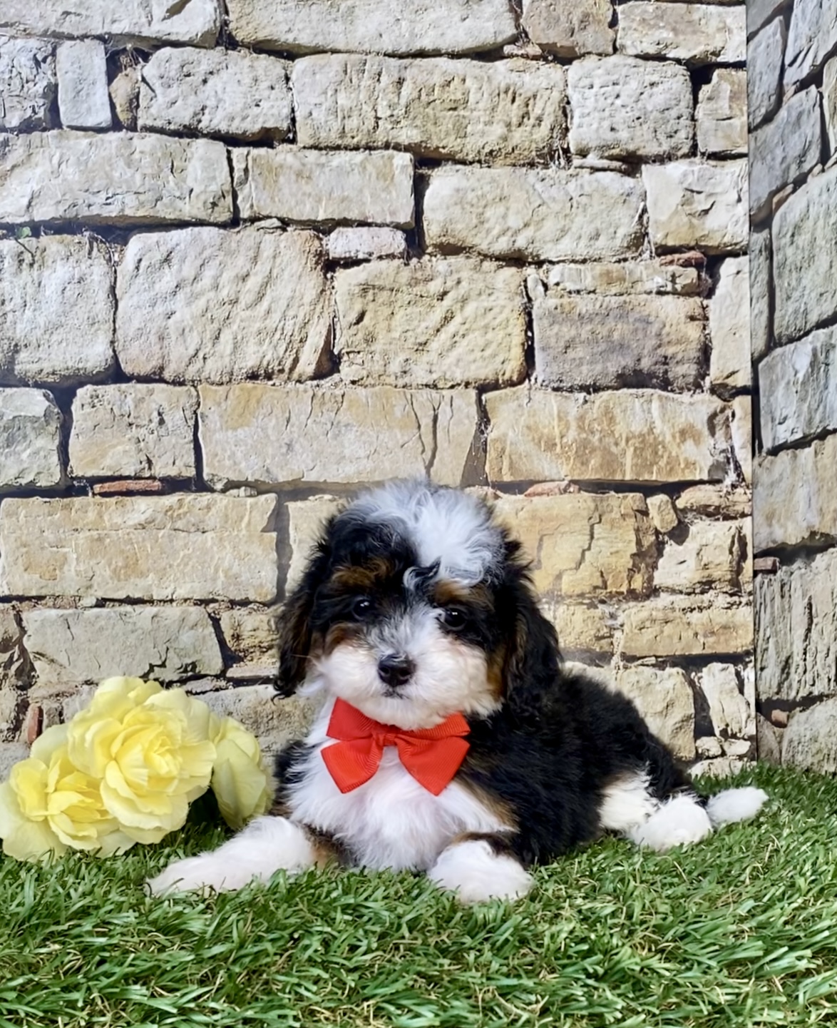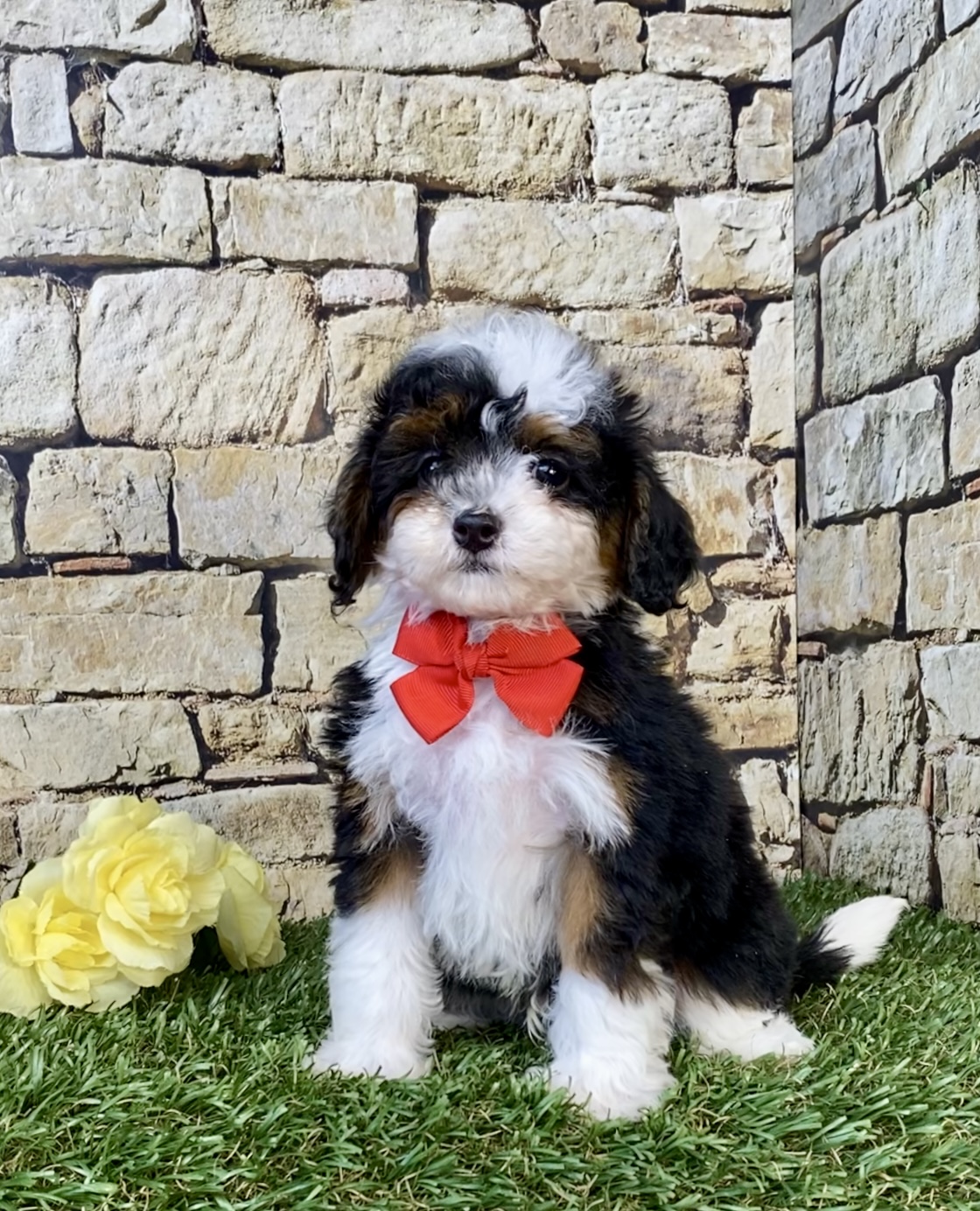 Meet this adorable Mini-Bernedoodle, a tiny bundle of joy with a delightful personality and a coat as soft as a cloud. Blending the intelligence and hypoallergenic traits of a Poodle with the friendly nature and stunning colors of a Bernese Mountain Dog, this pup is the perfect companion for any household. Mr. Felix promises endless love and happiness to those lucky enough to bring him home.