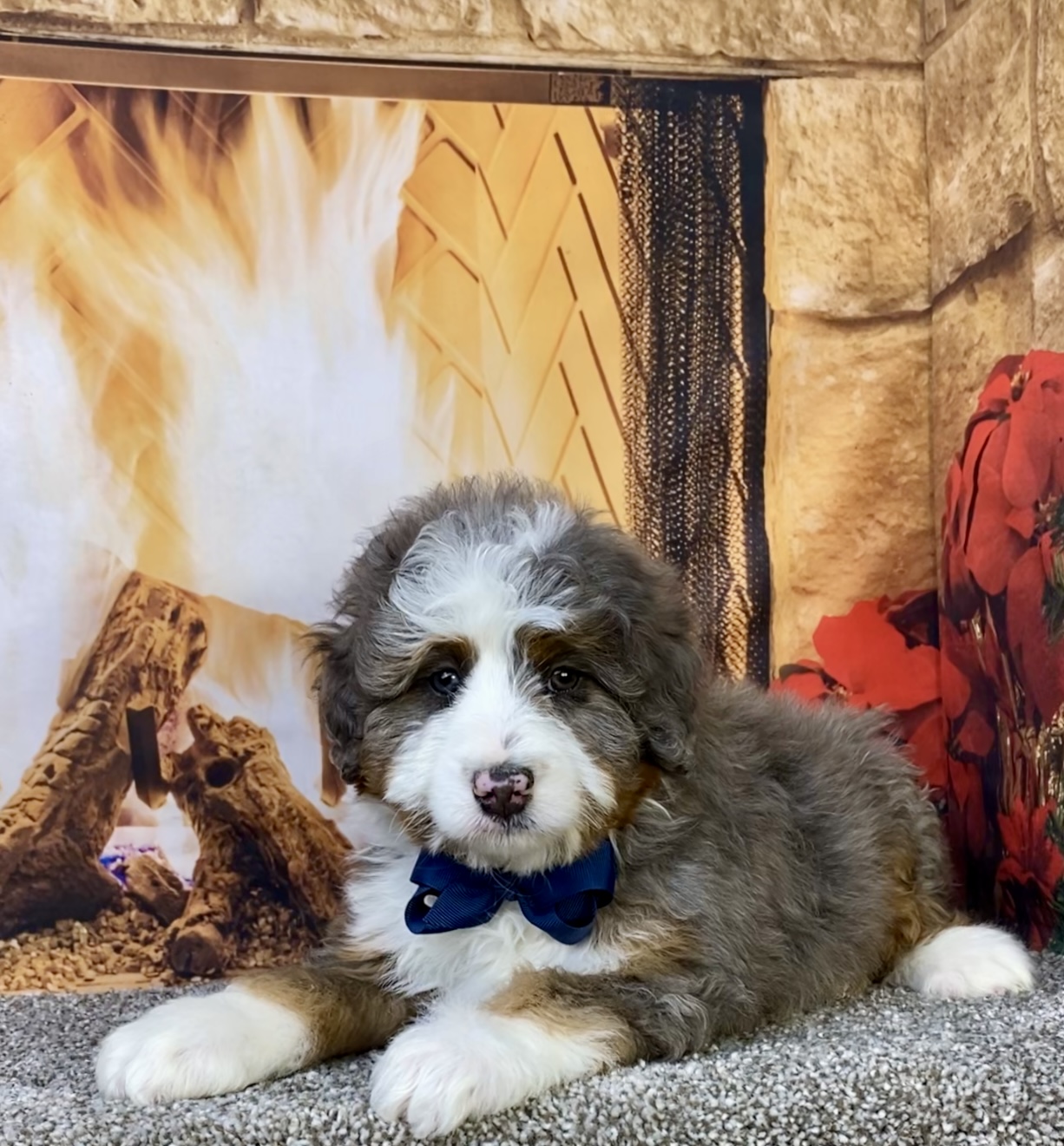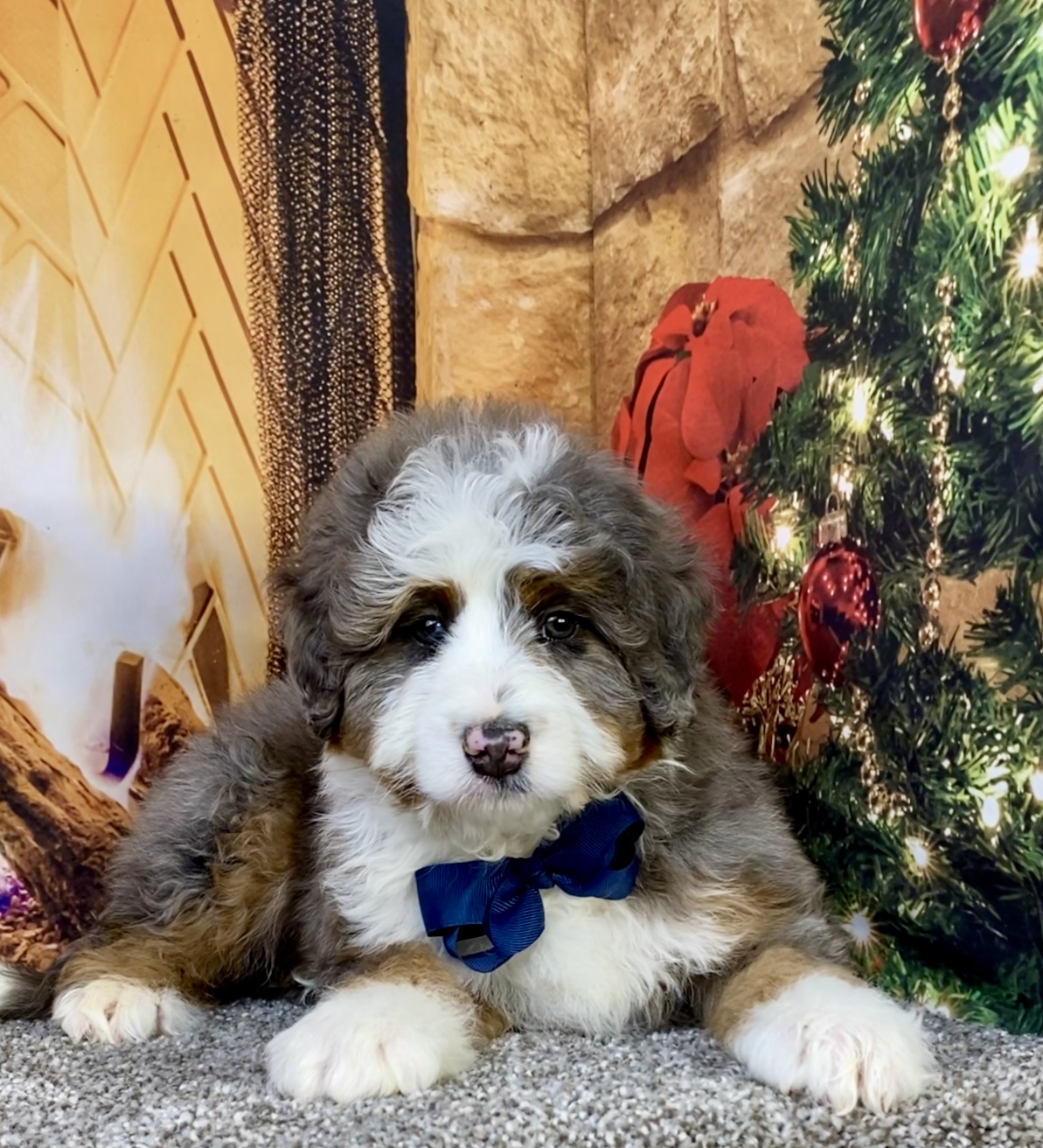 Meet this adorable Mini-Bernedoodle, a tiny bundle of joy with a delightful personality and a coat as soft as a cloud. Blending the intelligence and hypoallergenic traits of a Poodle with the friendly nature and stunning colors of a Bernese Mountain Dog, this pup is the perfect companion for any household. Mr. Ford promises endless love and happiness to those lucky enough to bring him home.