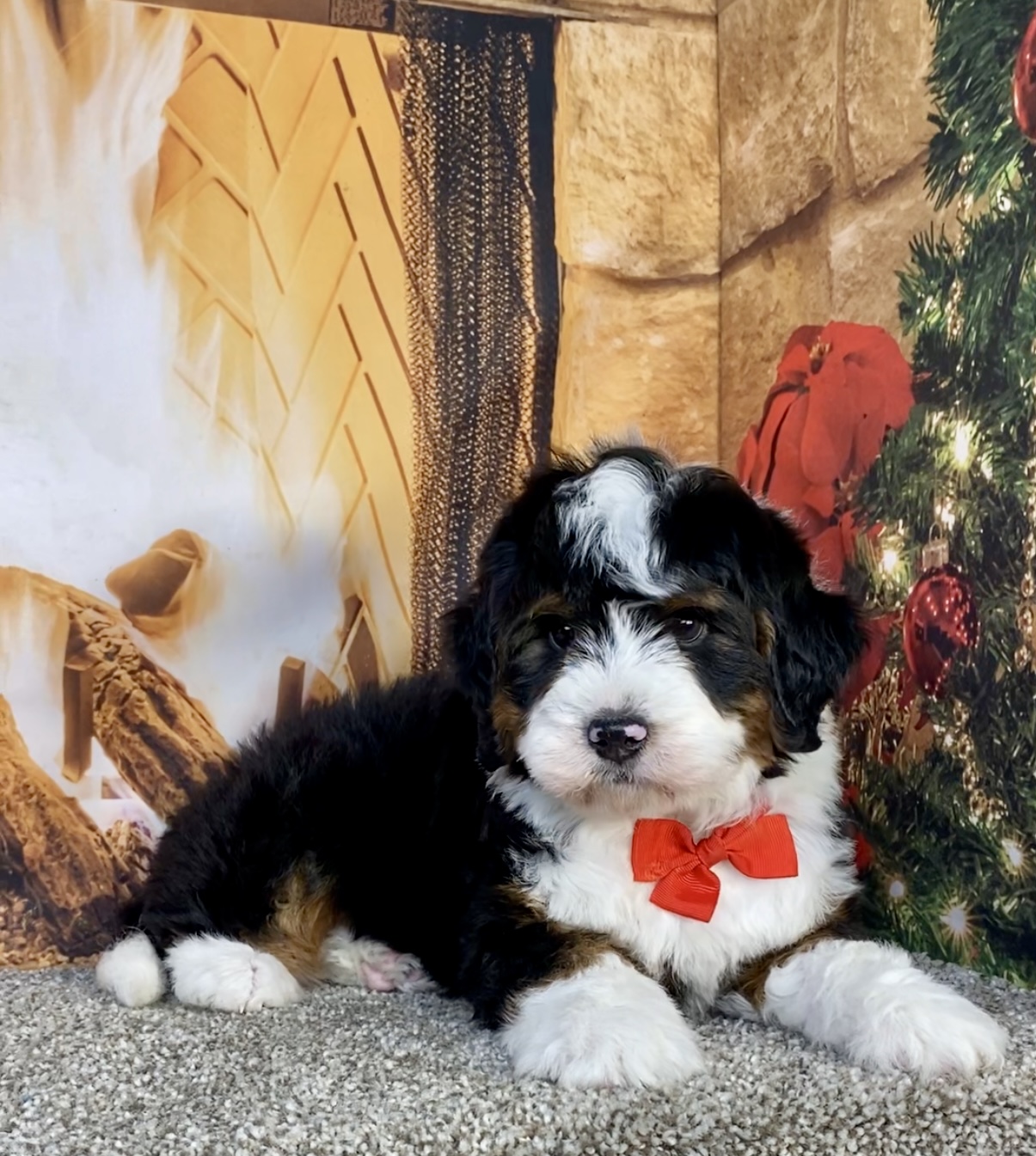 Meet this adorable Mini-Bernedoodle, a tiny bundle of joy with a delightful personality and a coat as soft as a cloud. Blending the intelligence and hypoallergenic traits of a Poodle with the friendly nature and stunning colors of a Bernese Mountain Dog, this pup is the perfect companion for any household. Mr. Gavin promises endless love and happiness to those lucky enough to bring him home.