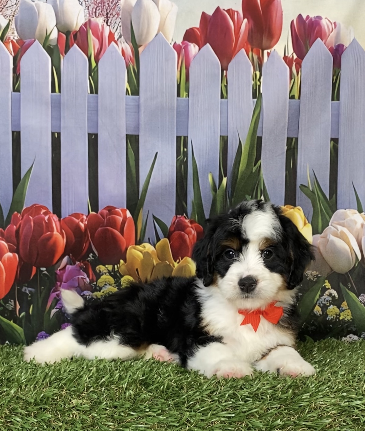 Meet this adorable Mini-Bernedoodle, a tiny bundle of joy with a delightful personality and a coat as soft as a cloud. Blending the intelligence and hypoallergenic traits of a Poodle with the friendly nature and stunning colors of a Bernese Mountain Dog, this pup is the perfect companion for any household. Mr. Hank promises endless love and happiness to those lucky enough to bring him home.