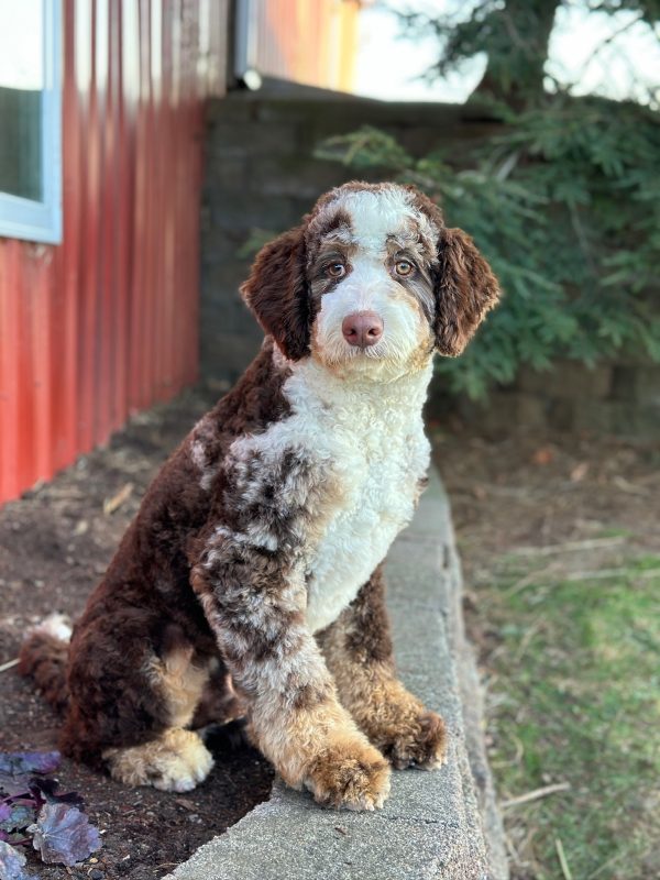 Meet this adorable Mini-Bernedoodle, a tiny bundle of joy with a delightful personality and a coat as soft as a cloud. Blending the intelligence and hypoallergenic traits of a Poodle with the friendly nature and stunning colors of a Bernese Mountain Dog, this pup is the perfect companion for any household. Mr. Hans promises endless love and happiness to those lucky enough to bring him home.