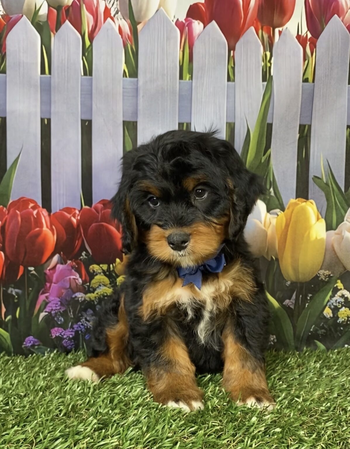 Meet this adorable Mini-Bernedoodle, a tiny bundle of joy with a delightful personality and a coat as soft as a cloud. Blending the intelligence and hypoallergenic traits of a Poodle with the friendly nature and stunning colors of a Bernese Mountain Dog, this pup is the perfect companion for any household. Mr. Hobo promises endless love and happiness to those lucky enough to bring him home.