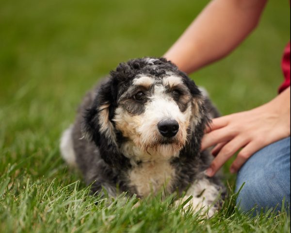 Meet this adorable F1B Mini-Bernedoodle, a tiny bundle of joy with a delightful personality and a coat as soft as a cloud. Blending the intelligence and hypoallergenic traits of a Poodle with the friendly nature and stunning colors of a Bernese Mountain Dog, this pup is the perfect companion for any household. He promises endless love and happiness to those lucky enough to bring his home. Expected to weigh around 18-25 lbs. full grown.