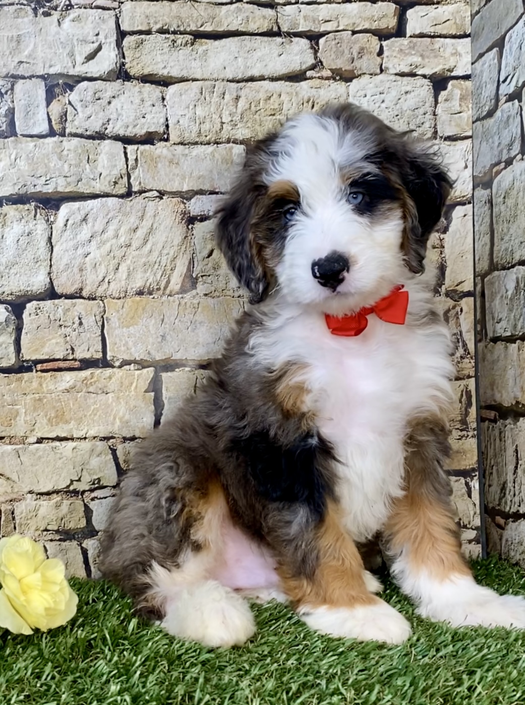 Meet this adorable Mini-Bernedoodle, a tiny bundle of joy with a delightful personality and a coat as soft as a cloud. Blending the intelligence and hypoallergenic traits of a Poodle with the friendly nature and stunning colors of a Bernese Mountain Dog, this pup is the perfect companion for any household. Mr. Ken promises endless love and happiness to those lucky enough to bring him home.
