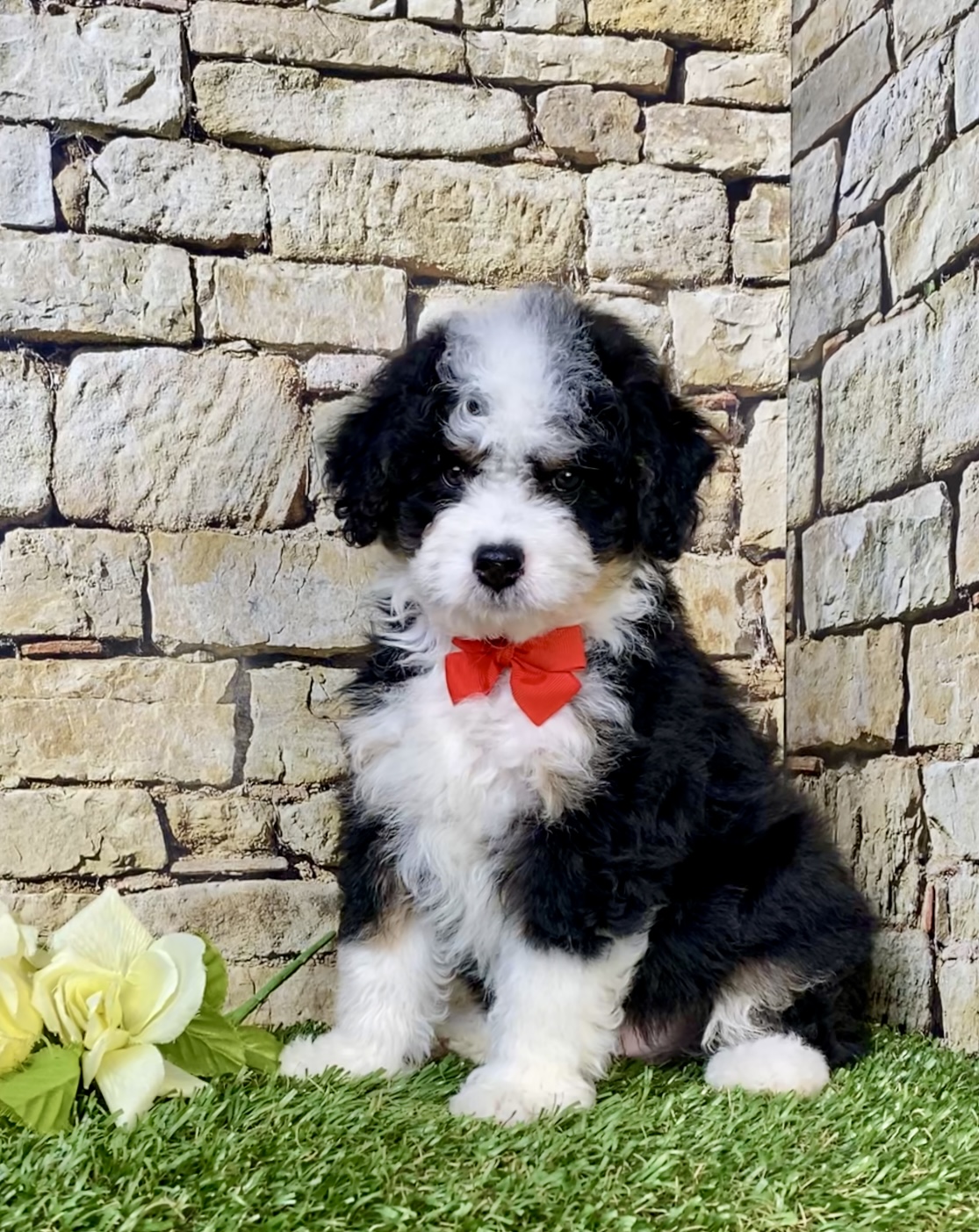 Meet this adorable Mini-Bernedoodle, a tiny bundle of joy with a delightful personality and a coat as soft as a cloud. Blending the intelligence and hypoallergenic traits of a Poodle with the friendly nature and stunning colors of a Bernese Mountain Dog, this pup is the perfect companion for any household. Mr. Loki promises endless love and happiness to those lucky enough to bring him home.