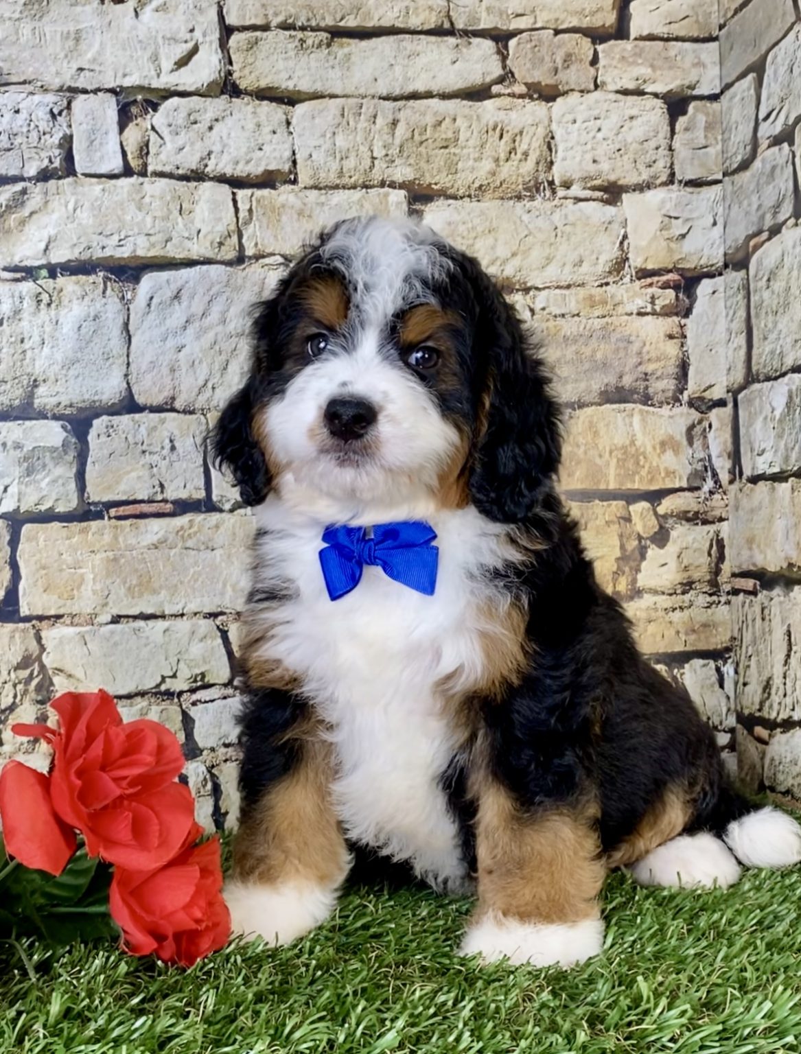 Meet this adorable Mini-Bernedoodle, a tiny bundle of joy with a delightful personality and a coat as soft as a cloud. Blending the intelligence and hypoallergenic traits of a Poodle with the friendly nature and stunning colors of a Bernese Mountain Dog, this pup is the perfect companion for any household. He promises endless love and happiness to those lucky enough to bring him home.