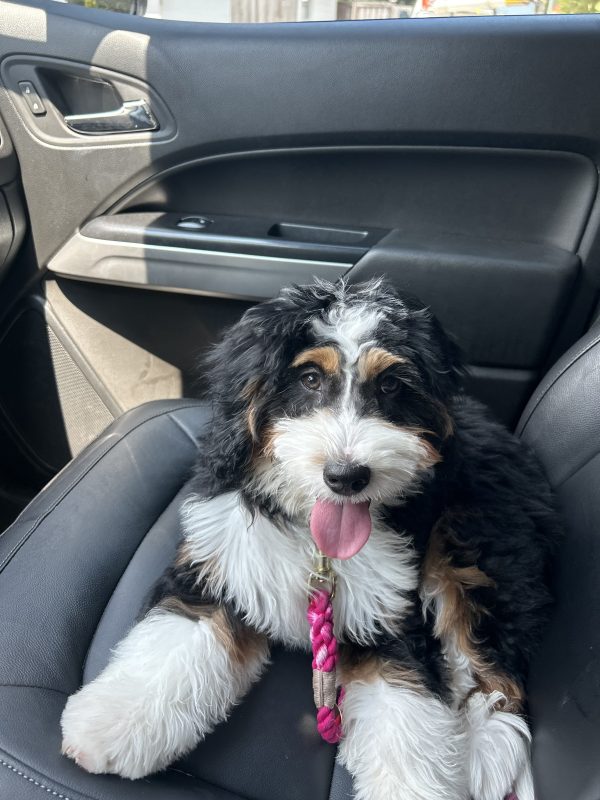Meet this adorable Mini-Bernedoodle, a tiny bundle of joy with a delightful personality and a coat as soft as a cloud. Blending the intelligence and hypoallergenic traits of a Poodle with the friendly nature and stunning colors of a Bernese Mountain Dog, this pup is the perfect companion for any household. He promises endless love and happiness to those lucky enough to bring him home.