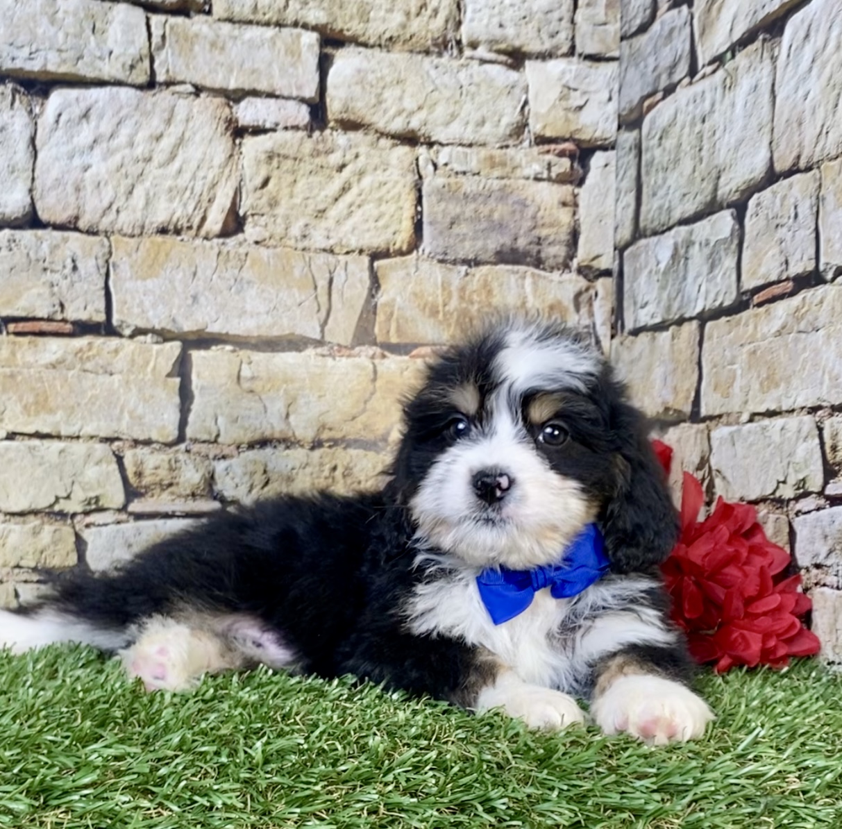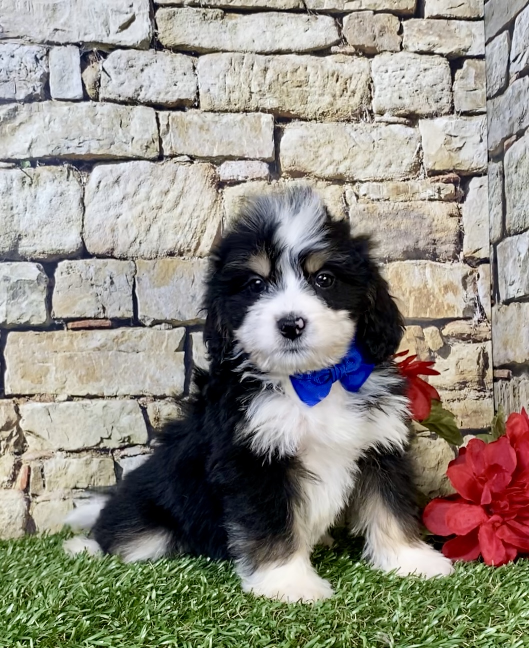 Meet this adorable Mini-Bernedoodle, a tiny bundle of joy with a delightful personality and a coat as soft as a cloud. Blending the intelligence and hypoallergenic traits of a Poodle with the friendly nature and stunning colors of a Bernese Mountain Dog, this pup is the perfect companion for any household. Mr. Rambo promises endless love and happiness to those lucky enough to bring him home.