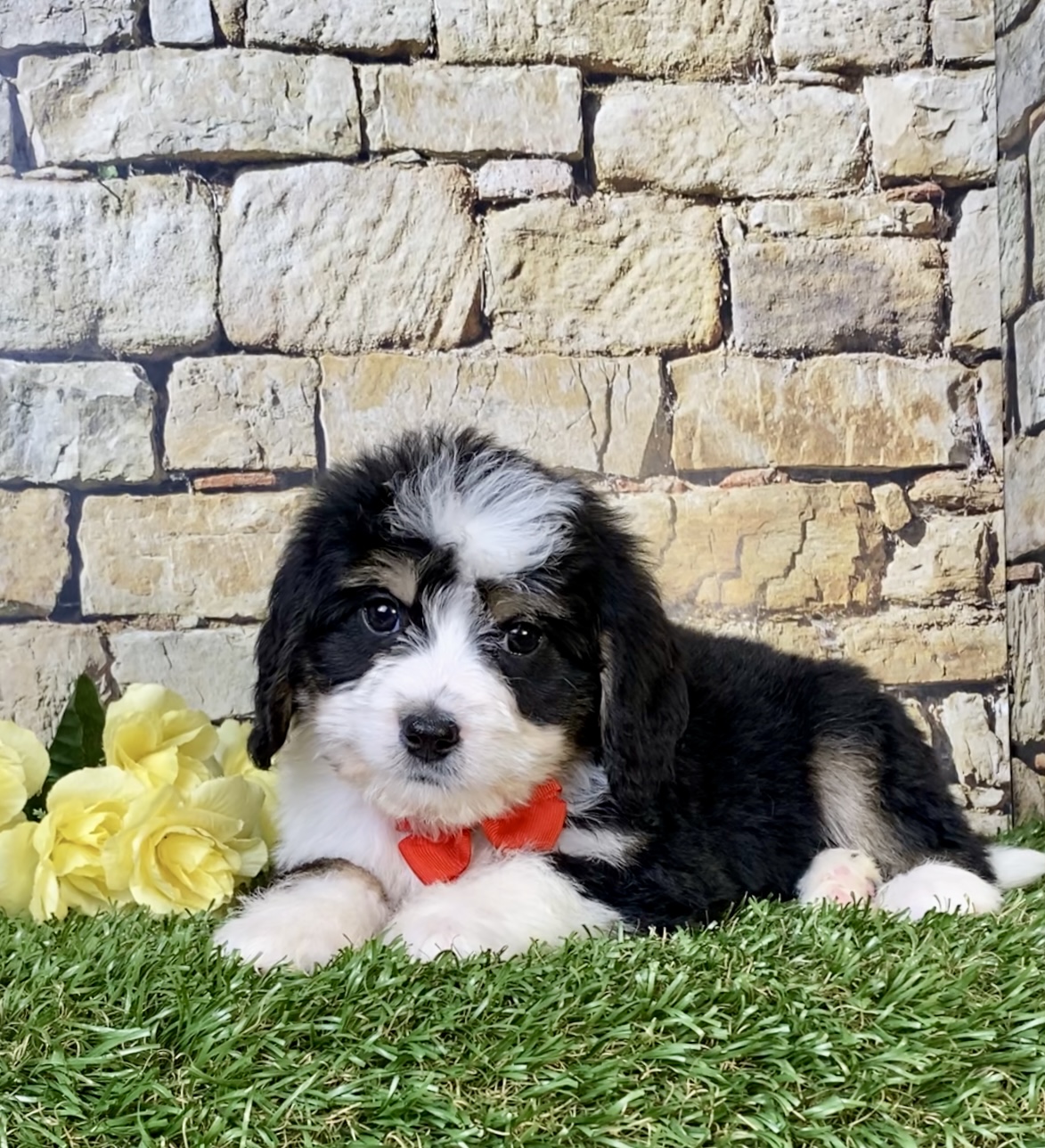 Meet this adorable Mini-Bernedoodle, a tiny bundle of joy with a delightful personality and a coat as soft as a cloud. Blending the intelligence and hypoallergenic traits of a Poodle with the friendly nature and stunning colors of a Bernese Mountain Dog, this pup is the perfect companion for any household. Mr. Ray promises endless love and happiness to those lucky enough to bring him home.