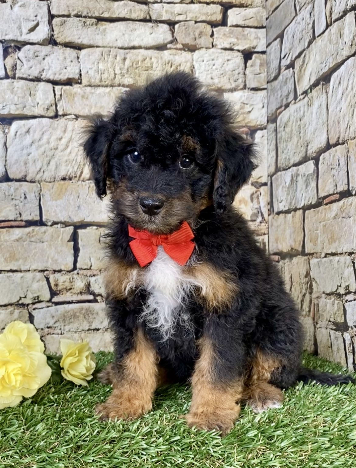 Meet this adorable Mini-Bernedoodle, a tiny bundle of joy with a delightful personality and a coat as soft as a cloud. Blending the intelligence and hypoallergenic traits of a Poodle with the friendly nature and stunning colors of a Bernese Mountain Dog, this pup is the perfect companion for any household. Mr. Waldo promises endless love and happiness to those lucky enough to bring him home.