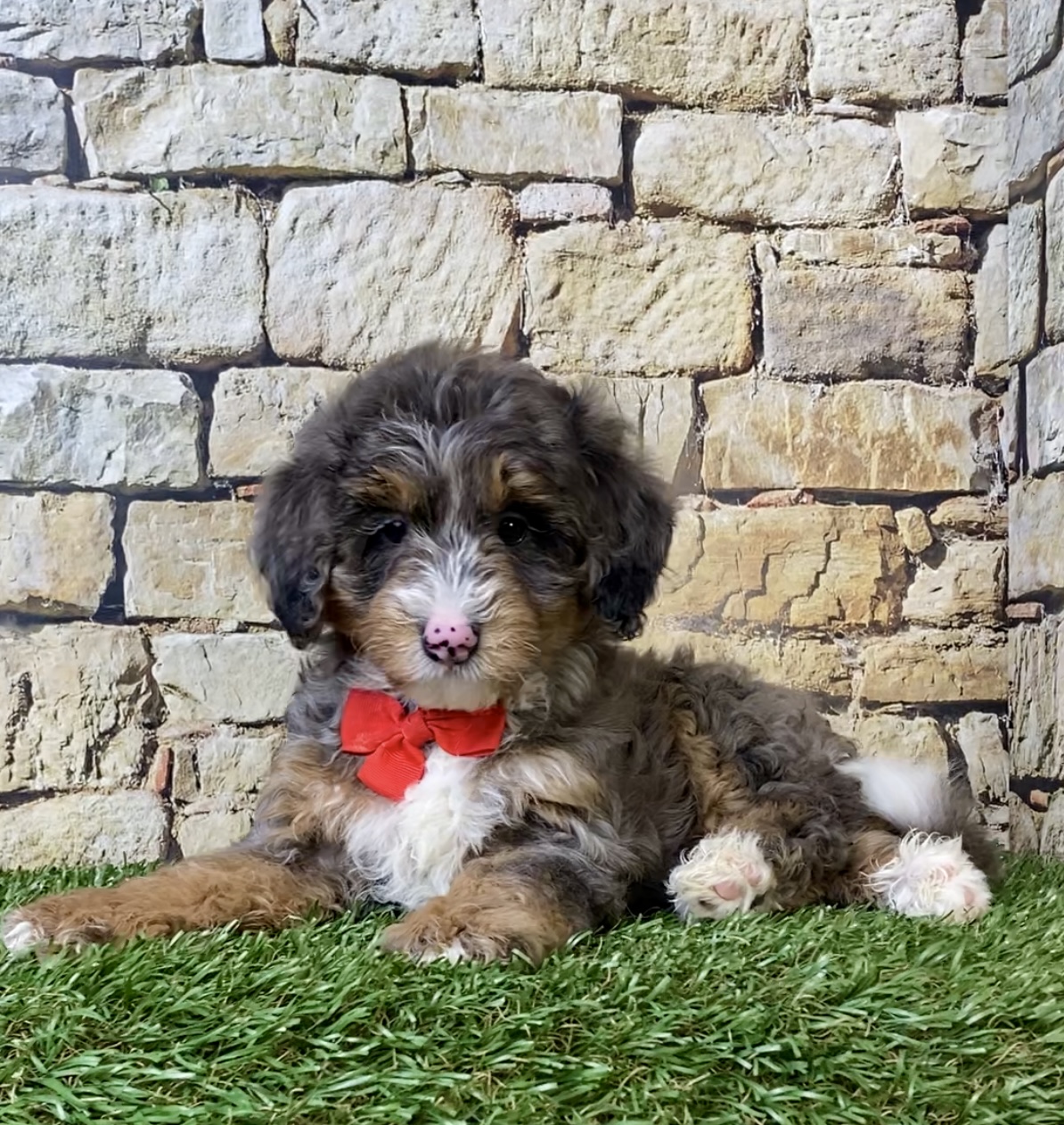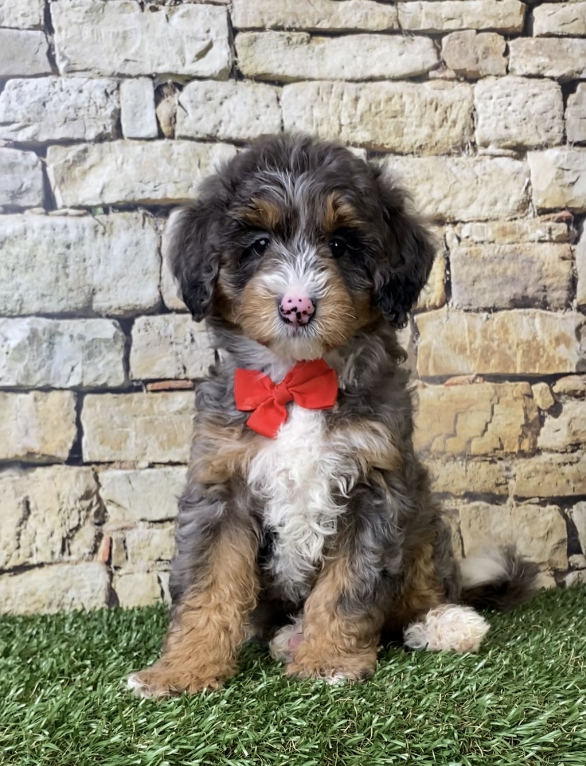 Meet this adorable Mini-Bernedoodle, a tiny bundle of joy with a delightful personality and a coat as soft as a cloud. Blending the intelligence and hypoallergenic traits of a Poodle with the friendly nature and stunning colors of a Bernese Mountain Dog, this pup is the perfect companion for any household. Mr. Windsor promises endless love and happiness to those lucky enough to bring him home.
