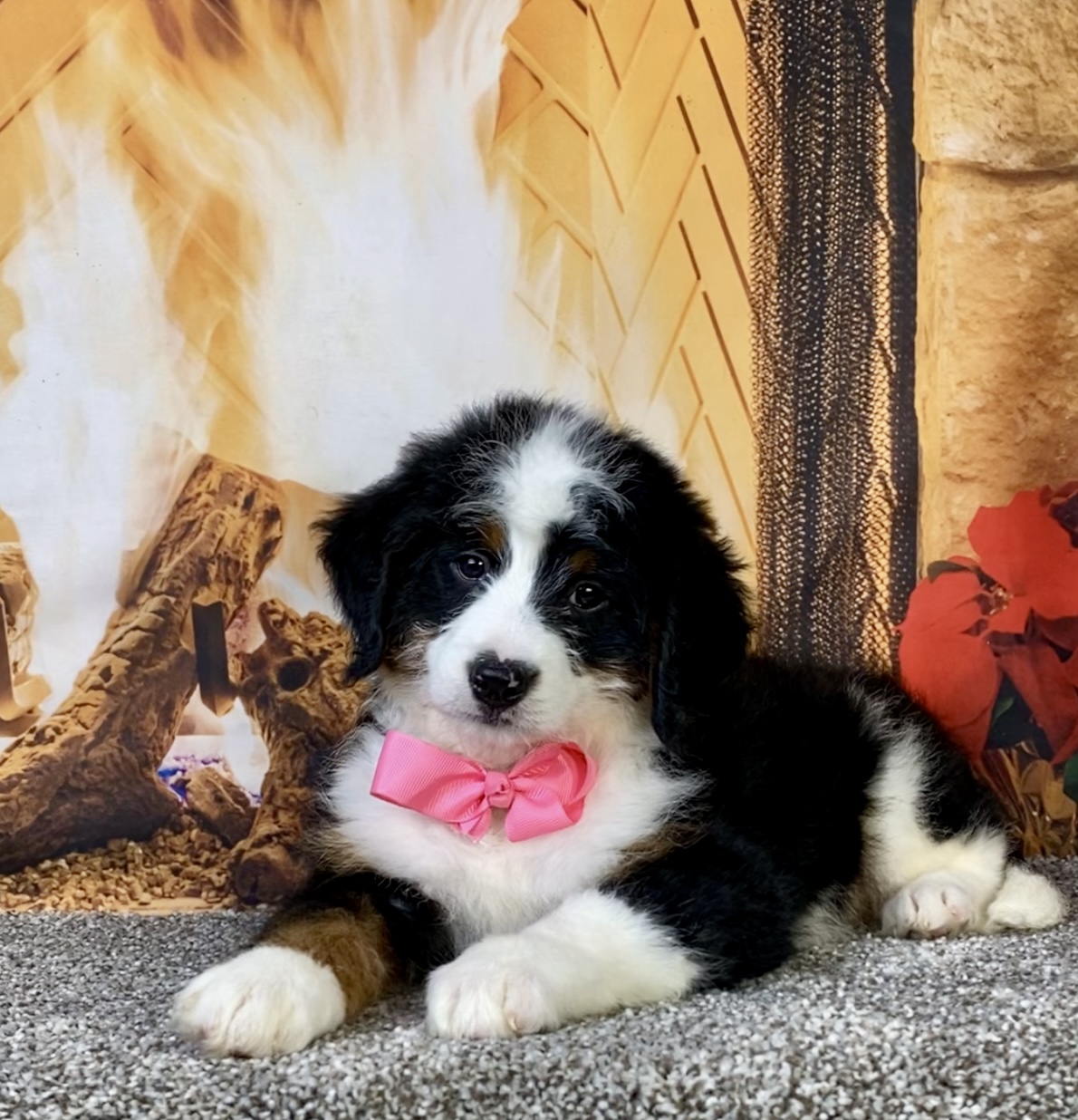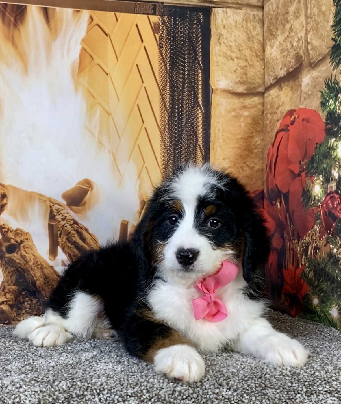 Meet this adorable Mini-Bernedoodle, a tiny bundle of joy with a delightful personality and a coat as soft as a cloud. Blending the intelligence and hypoallergenic traits of a Poodle with the friendly nature and stunning colors of a Bernese Mountain Dog, this pup is the perfect companion for any household. Ms. Amber promises endless love and happiness to those lucky enough to bring him home.