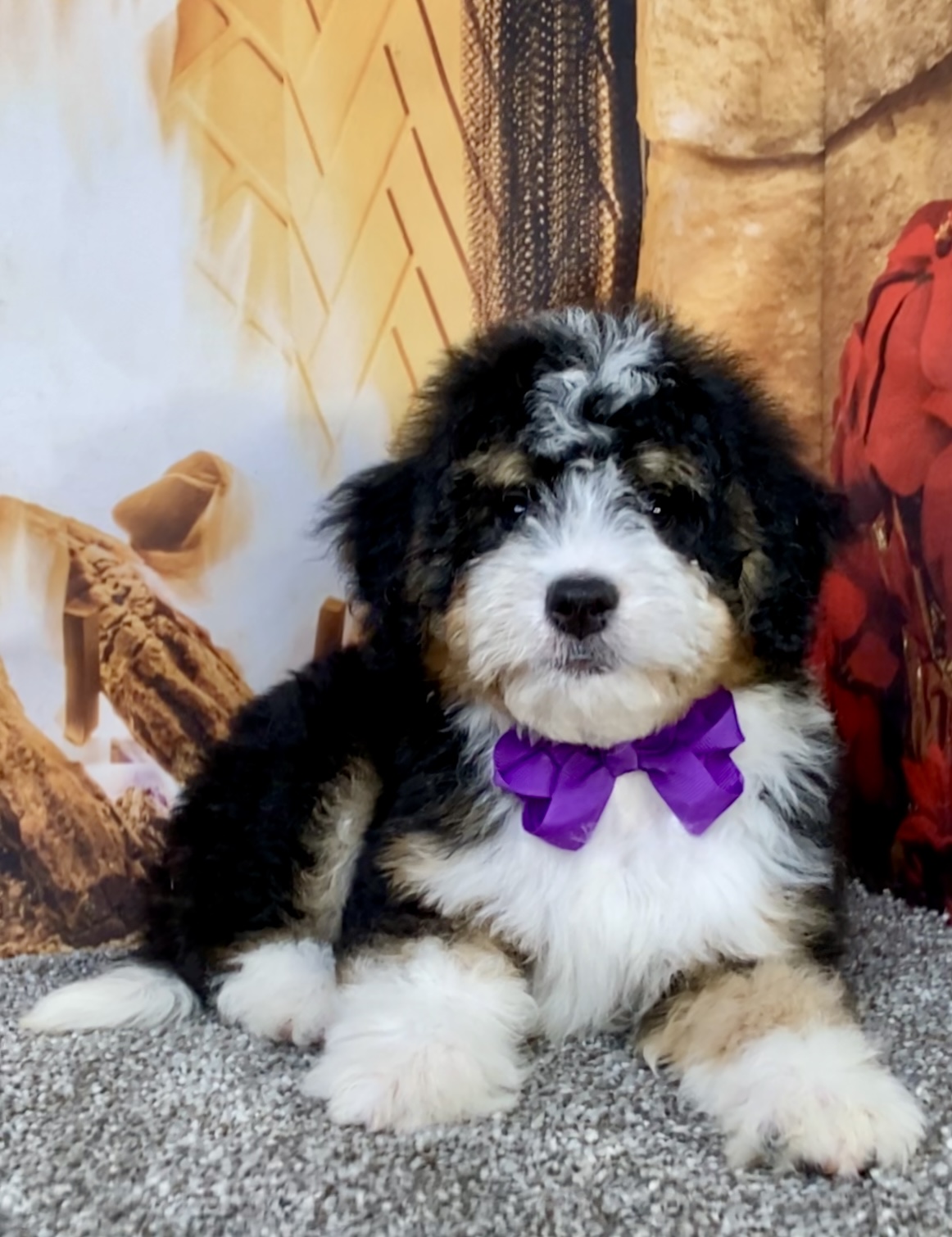 Meet this adorable Mini-Bernedoodle, a tiny bundle of joy with a delightful personality and a coat as soft as a cloud. Blending the intelligence and hypoallergenic traits of a Poodle with the friendly nature and stunning colors of a Bernese Mountain Dog, this pup is the perfect companion for any household. Ms. Bagel promises endless love and happiness to those lucky enough to bring him home.