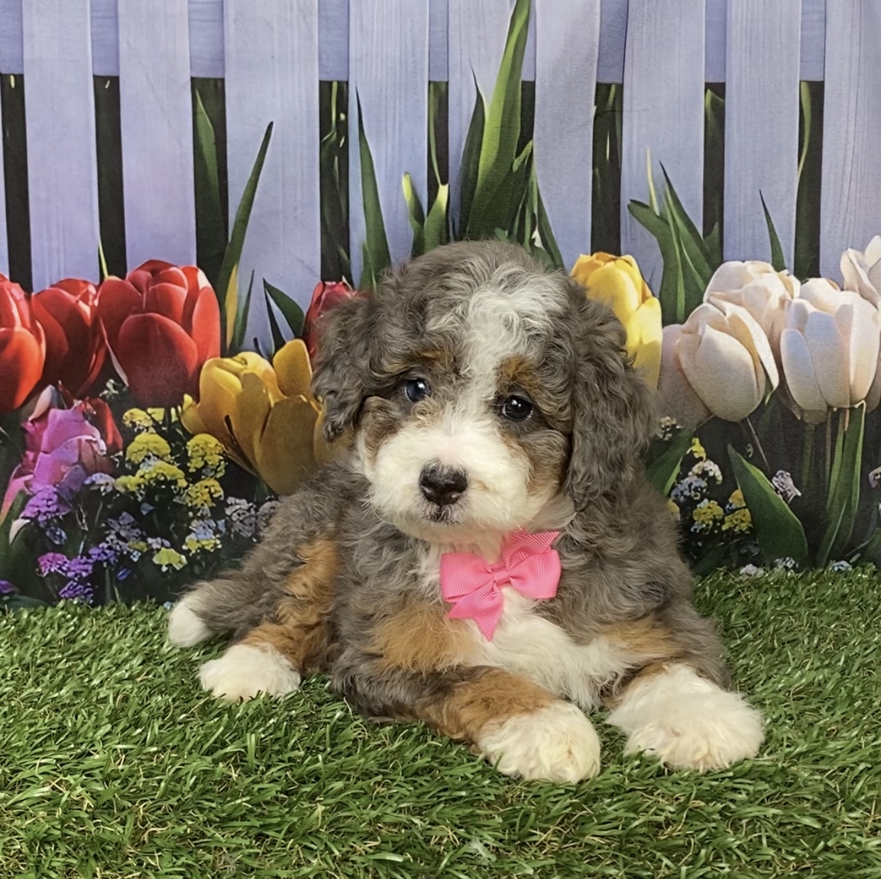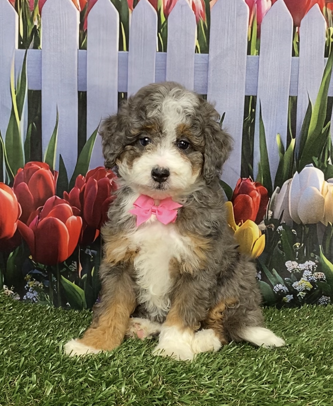 Meet this adorable Mini-Bernedoodle, a tiny bundle of joy with a delightful personality and a coat as soft as a cloud. Blending the intelligence and hypoallergenic traits of a Poodle with the friendly nature and stunning colors of a Bernese Mountain Dog, this pup is the perfect companion for any household. Ms. Blossom promises endless love and happiness to those lucky enough to bring him home.