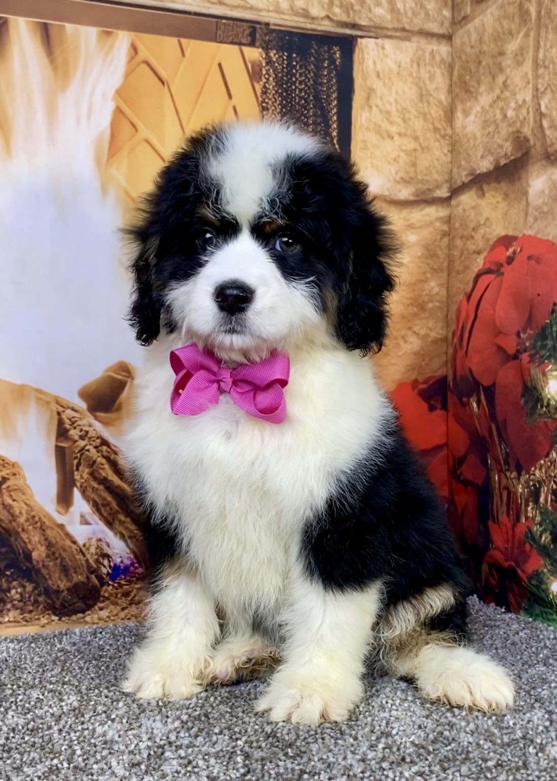 Meet this adorable Mini-Bernedoodle, a tiny bundle of joy with a delightful personality and a coat as soft as a cloud. Blending the intelligence and hypoallergenic traits of a Poodle with the friendly nature and stunning colors of a Bernese Mountain Dog, this pup is the perfect companion for any household. Ms. Carmel promises endless love and happiness to those lucky enough to bring him home.