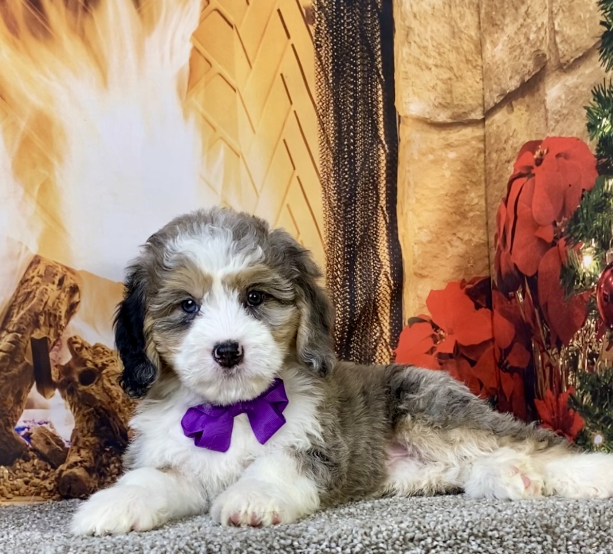 Meet this adorable Mini-Bernedoodle, a tiny bundle of joy with a delightful personality and a coat as soft as a cloud. Blending the intelligence and hypoallergenic traits of a Poodle with the friendly nature and stunning colors of a Bernese Mountain Dog, this pup is the perfect companion for any household. Ms. Chai promises endless love and happiness to those lucky enough to bring him home.