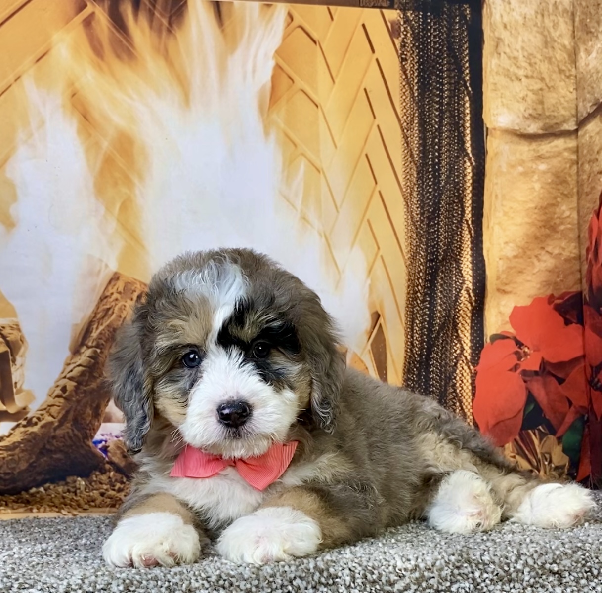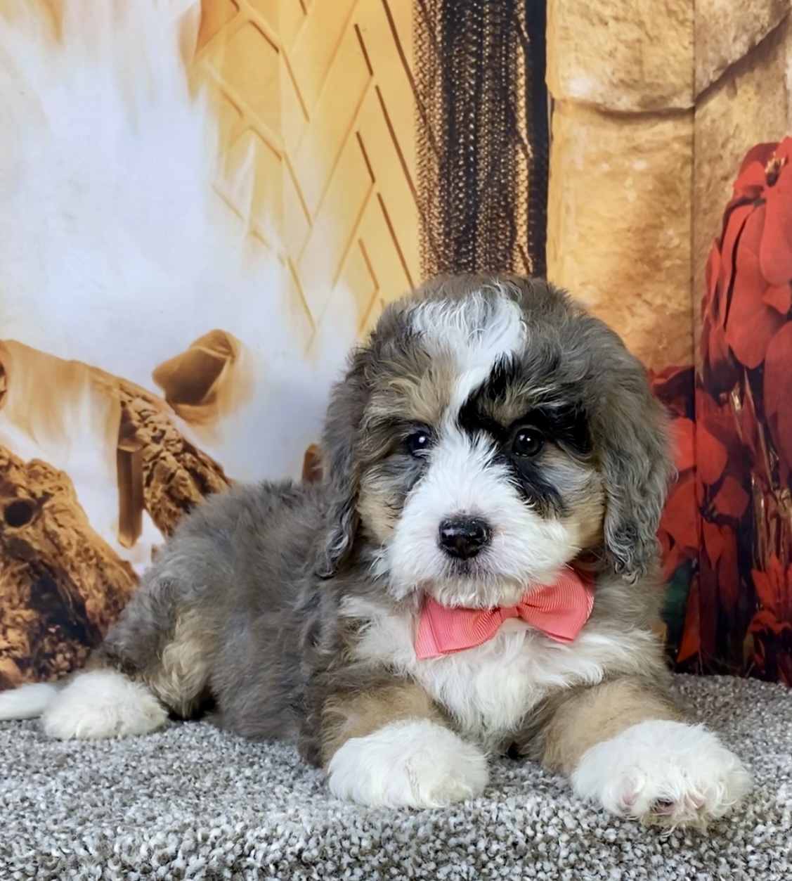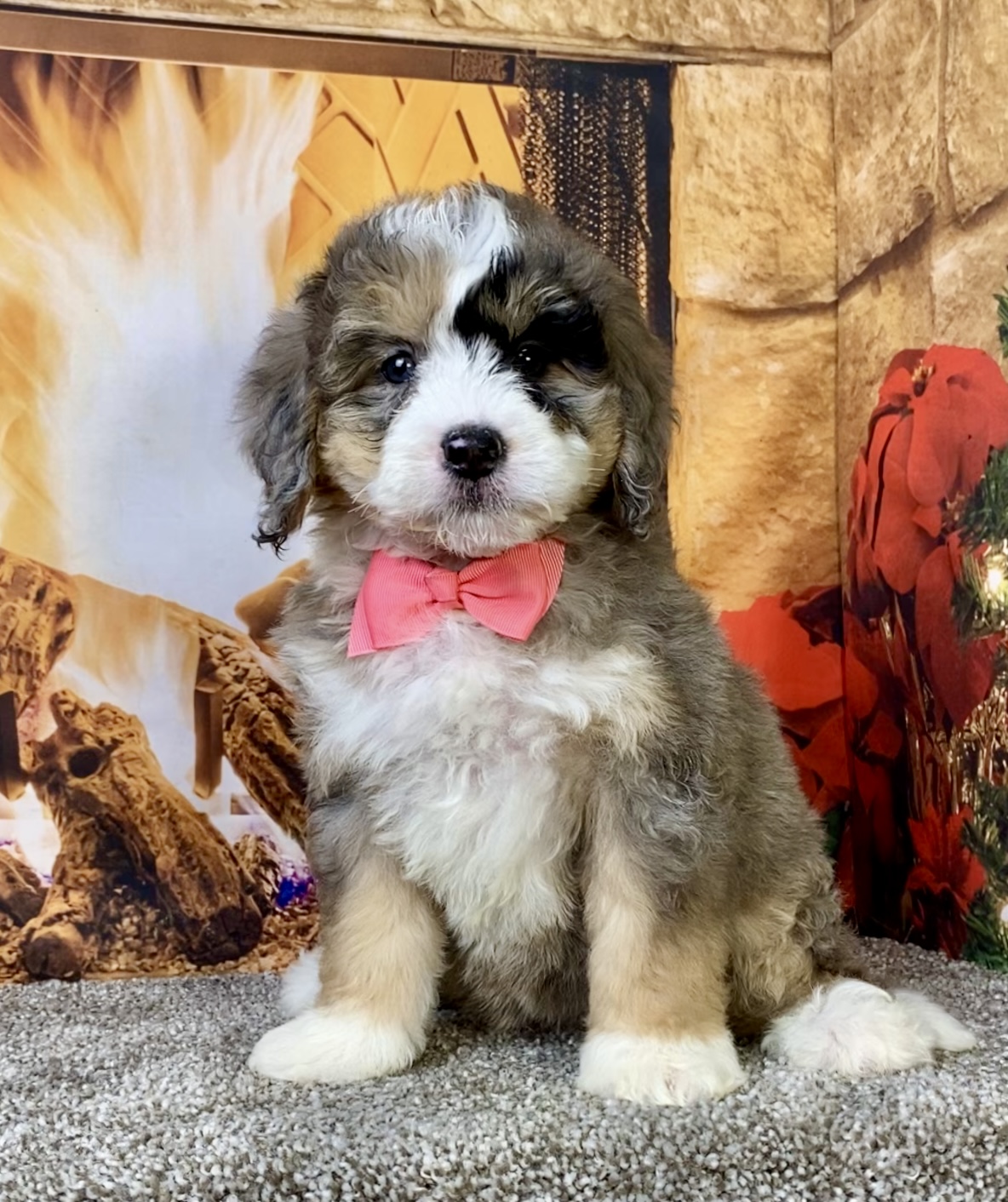 Meet this adorable Mini-Bernedoodle, a tiny bundle of joy with a delightful personality and a coat as soft as a cloud. Blending the intelligence and hypoallergenic traits of a Poodle with the friendly nature and stunning colors of a Bernese Mountain Dog, this pup is the perfect companion for any household. Ms. Cindy promises endless love and happiness to those lucky enough to bring him home.