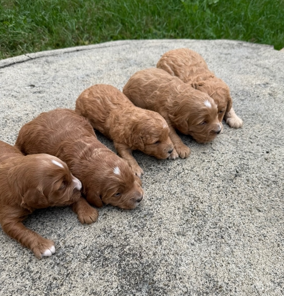 Meet Dixie, the sweet and loving Mini-Goldendoodle mom! With her gentle nature and affectionate personality, Dixie is the heart of her puppies’ world. She’s intelligent, playful, and devoted—traits that make her not only an incredible mom but also a beloved companion. Her soft, wavy coat and warm, soulful eyes make her absolutely irresistible. Dixie’s nurturing spirit shines through in every cuddle and playful moment with her little ones!