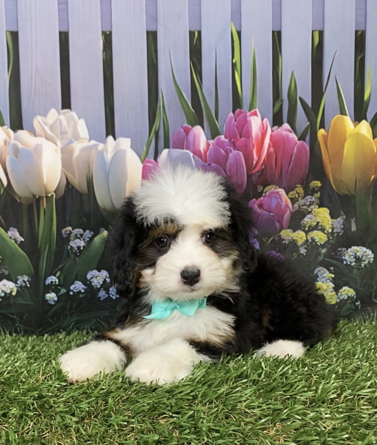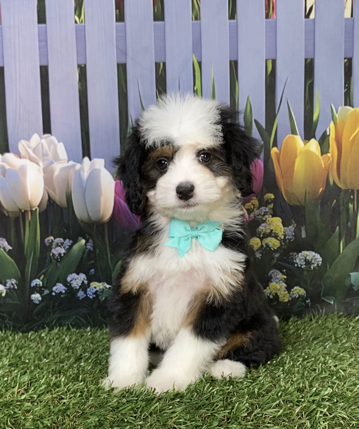 Meet this adorable Mini-Bernedoodle, a tiny bundle of joy with a delightful personality and a coat as soft as a cloud. Blending the intelligence and hypoallergenic traits of a Poodle with the friendly nature and stunning colors of a Bernese Mountain Dog, this pup is the perfect companion for any household. Ms. Dixie promises endless love and happiness to those lucky enough to bring him home.