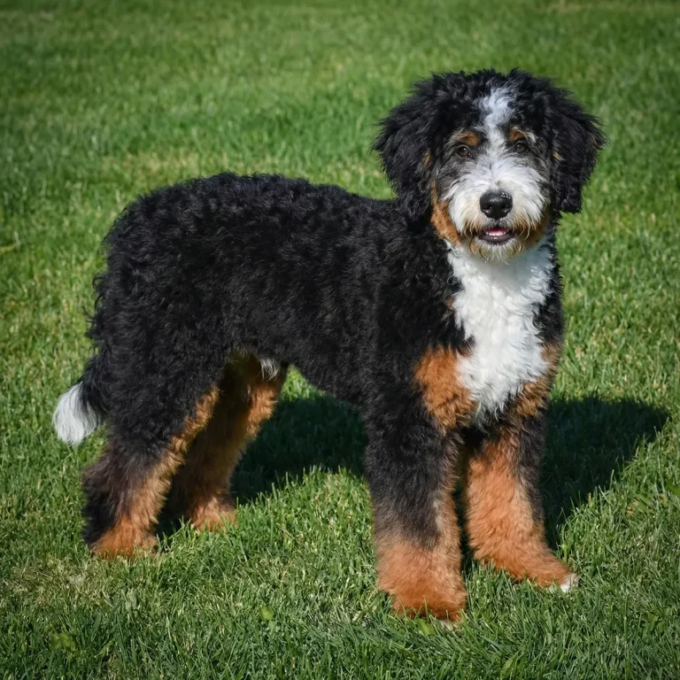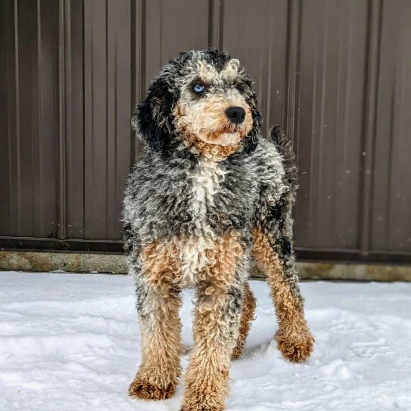 Meet this adorable Mini-Bernedoodle, a tiny bundle of joy with a delightful personality and a coat as soft as a cloud. Blending the intelligence and hypoallergenic traits of a Poodle with the friendly nature and stunning colors of a Bernese Mountain Dog, this pup is the perfect companion for any household. Ms. Donna promises endless love and happiness to those lucky enough to bring him home. Both of Donna’s parents are Mini-Bernedoodles, which makes her an F2 multi-generation Mini-Bernedoodle. This usually results in more consistent weight, hair coat, and temperament.