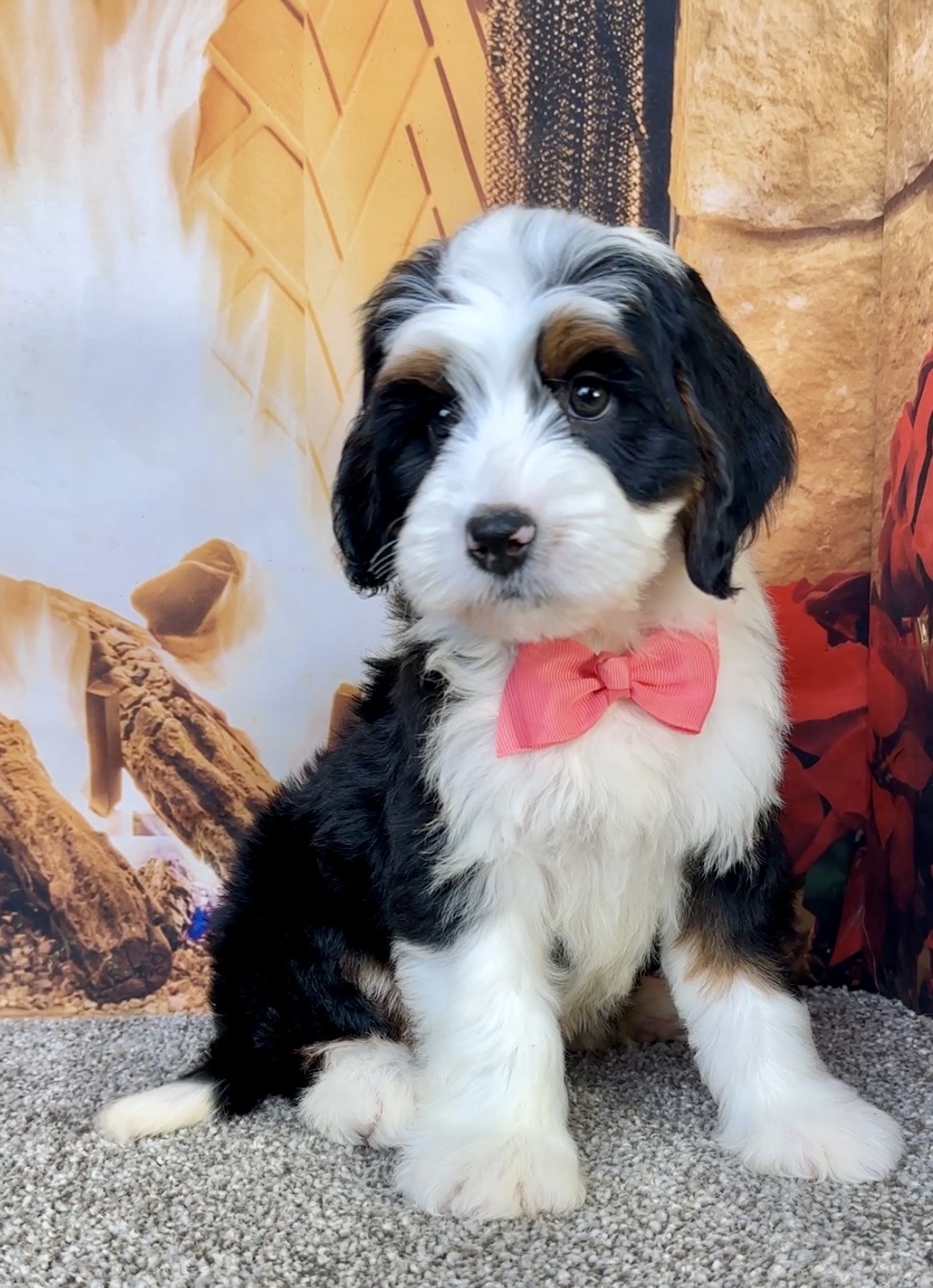 Meet this adorable Mini-Bernedoodle, a tiny bundle of joy with a delightful personality and a coat as soft as a cloud. Blending the intelligence and hypoallergenic traits of a Poodle with the friendly nature and stunning colors of a Bernese Mountain Dog, this pup is the perfect companion for any household. Ms. Eliza promises endless love and happiness to those lucky enough to bring her home.