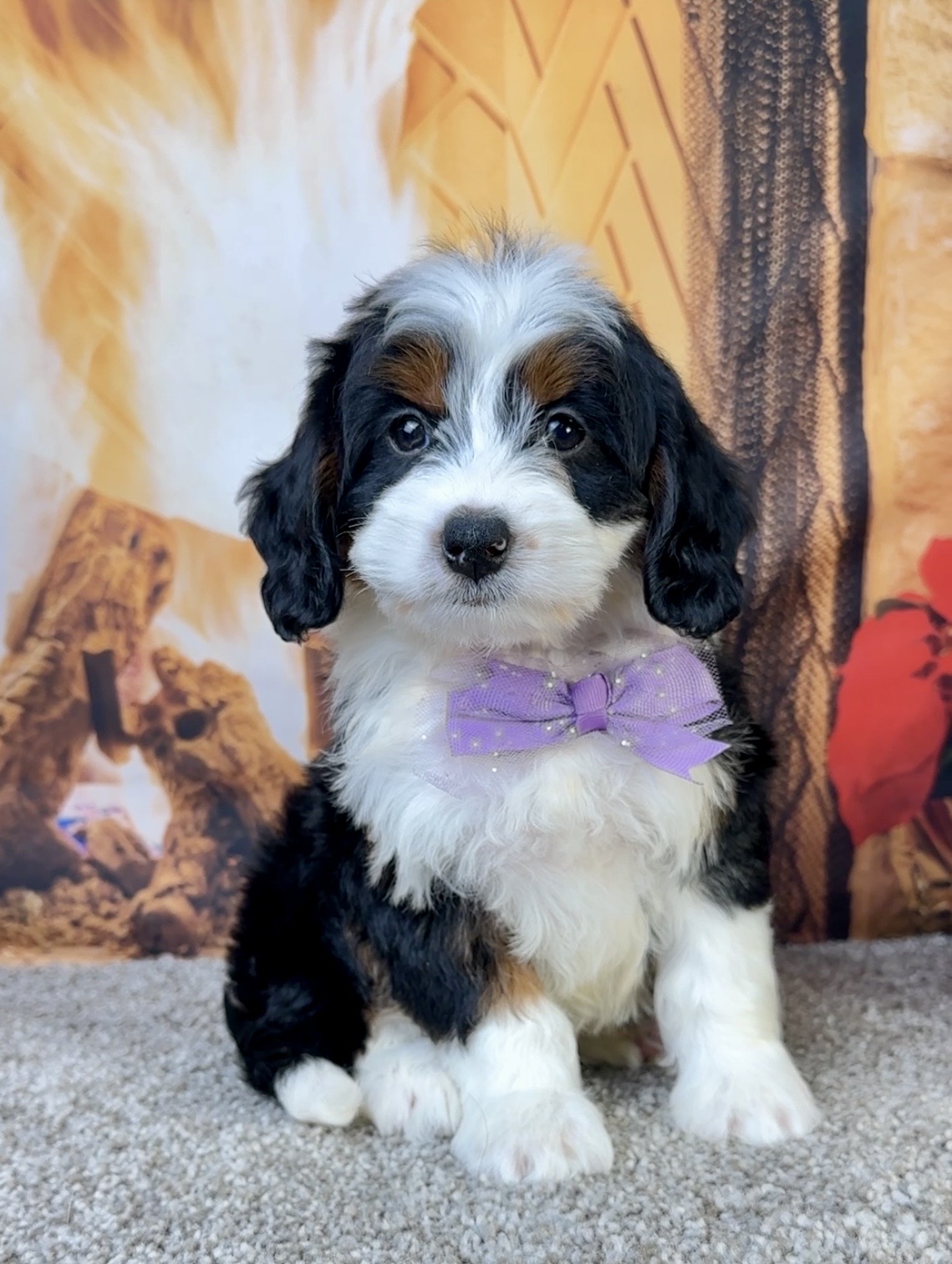 Meet this adorable Mini-Bernedoodle, a tiny bundle of joy with a delightful personality and a coat as soft as a cloud. Blending the intelligence and hypoallergenic traits of a Poodle with the friendly nature and stunning colors of a Bernese Mountain Dog, this pup is the perfect companion for any household. Ms. Ember promises endless love and happiness to those lucky enough to bring her home.
