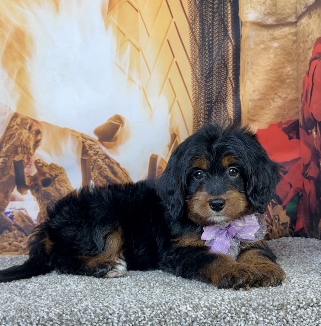 Meet this adorable Mini-Bernedoodle, a tiny bundle of joy with a delightful personality and a coat as soft as a cloud. Blending the intelligence and hypoallergenic traits of a Poodle with the friendly nature and stunning colors of a Bernese Mountain Dog, this pup is the perfect companion for any household. Ms. Esspresso promises endless love and happiness to those lucky enough to bring her home.