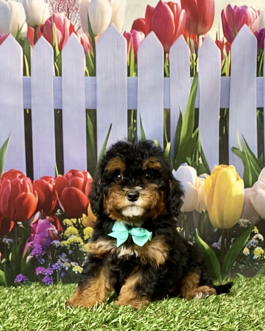 Meet this adorable Mini-Bernedoodle, a tiny bundle of joy with a delightful personality and a coat as soft as a cloud. Blending the intelligence and hypoallergenic traits of a Poodle with the friendly nature and stunning colors of a Bernese Mountain Dog, this pup is the perfect companion for any household. Ms. Etsy promises endless love and happiness to those lucky enough to bring him home.