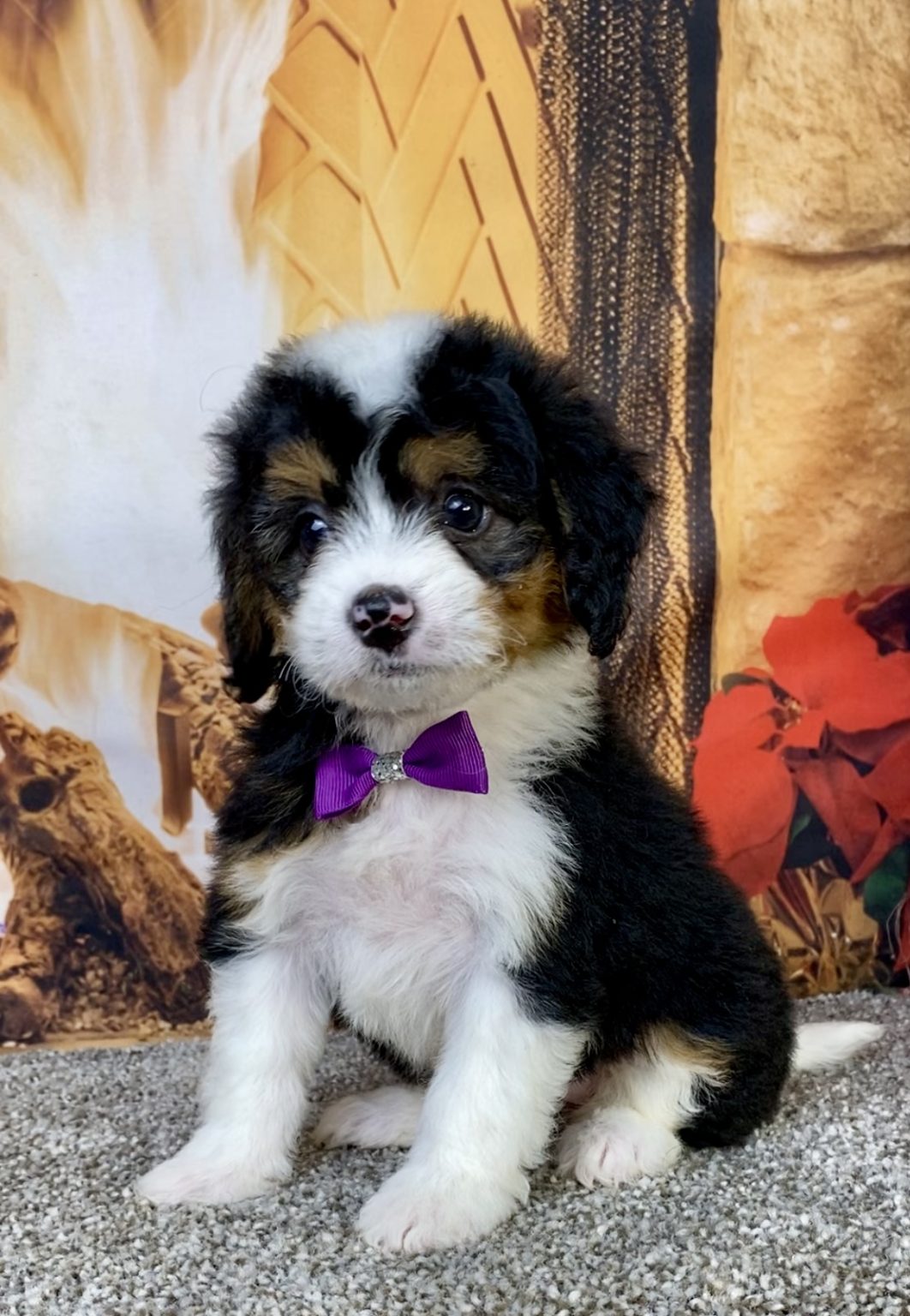 Meet this adorable Mini-Bernedoodle, a tiny bundle of joy with a delightful personality and a coat as soft as a cloud. Blending the intelligence and hypoallergenic traits of a Poodle with the friendly nature and stunning colors of a Bernese Mountain Dog, this pup is the perfect companion for any household. Ms. Hailey promises endless love and happiness to those lucky enough to bring him home.