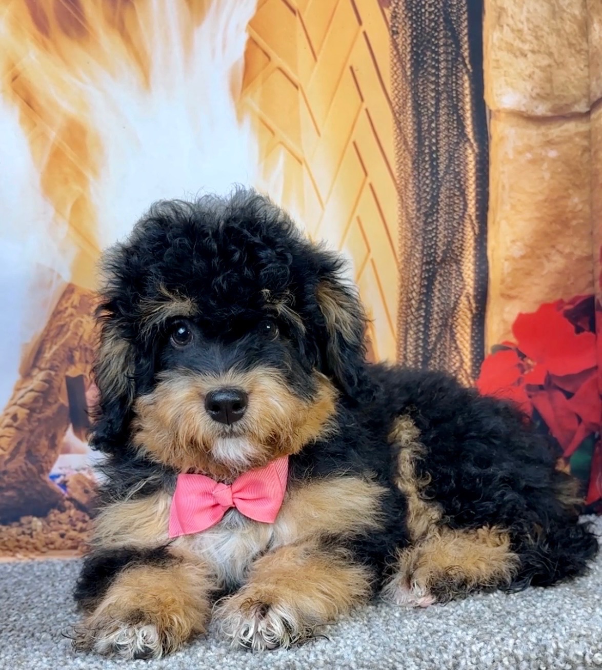 Meet this adorable Mini-Bernedoodle, a tiny bundle of joy with a delightful personality and a coat as soft as a cloud. Blending the intelligence and hypoallergenic traits of a Poodle with the friendly nature and stunning colors of a Bernese Mountain Dog, this pup is the perfect companion for any household. Ms. Holly promises endless love and happiness to those lucky enough to bring him home.