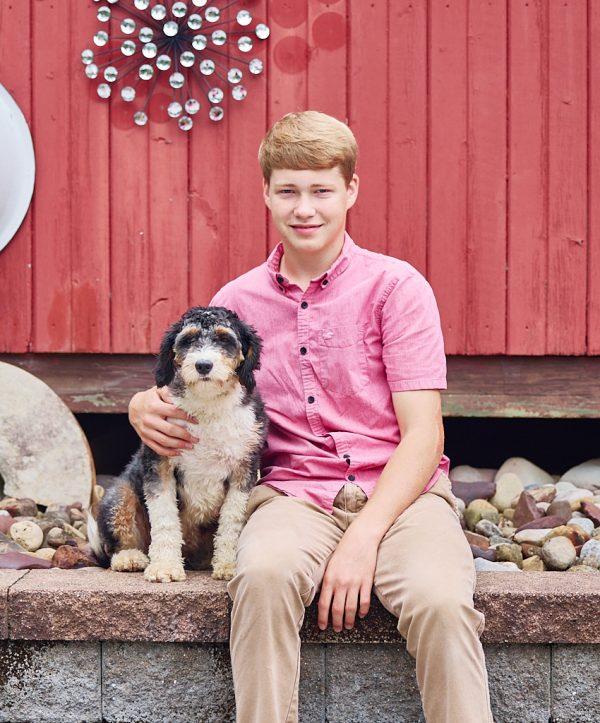 Meet Elliot — one of our stunning Mini-Bernedoodle dads! With his striking merle coat, fluffy curls, and calm, confident personality, Elliot brings beauty and balance to every litter. He’s friendly, laid-back, and loves soaking up the sunshine, making him the perfect match for passing down lovable, family-ready temperaments and those signature good looks.